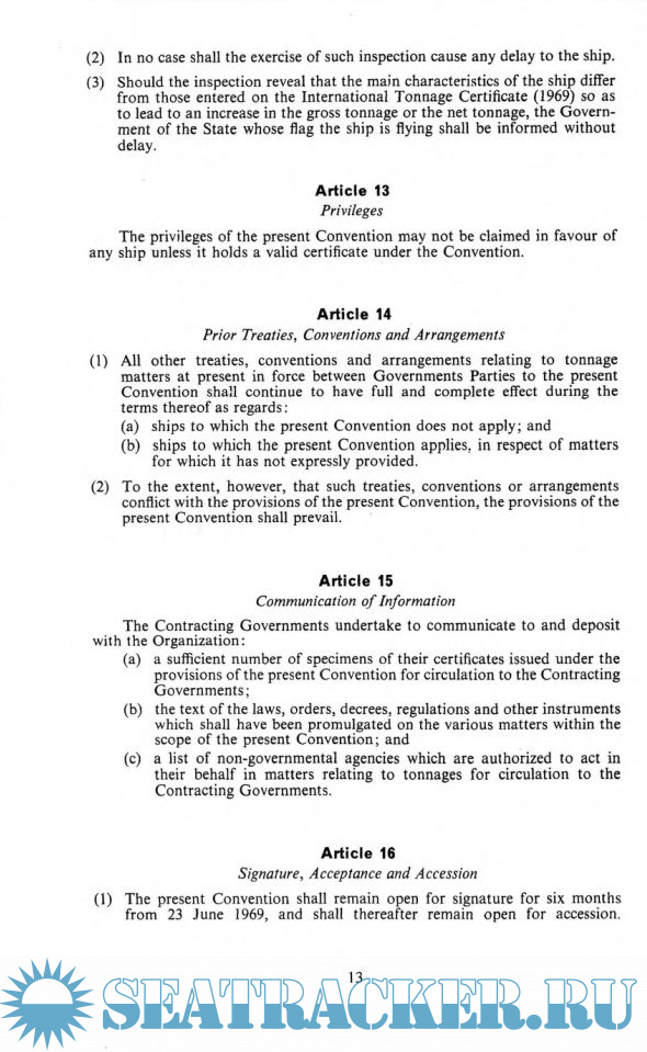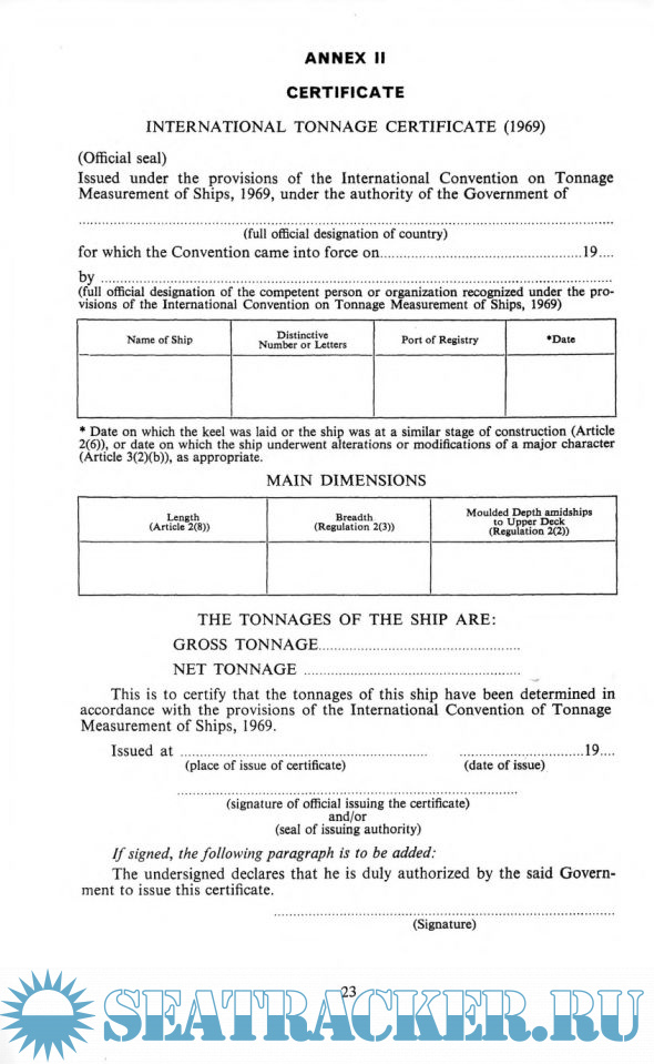 Description: The Convention, adopted by IMO in 1969, was the first successful attempt to introduce a universal tonnage measurement system.
