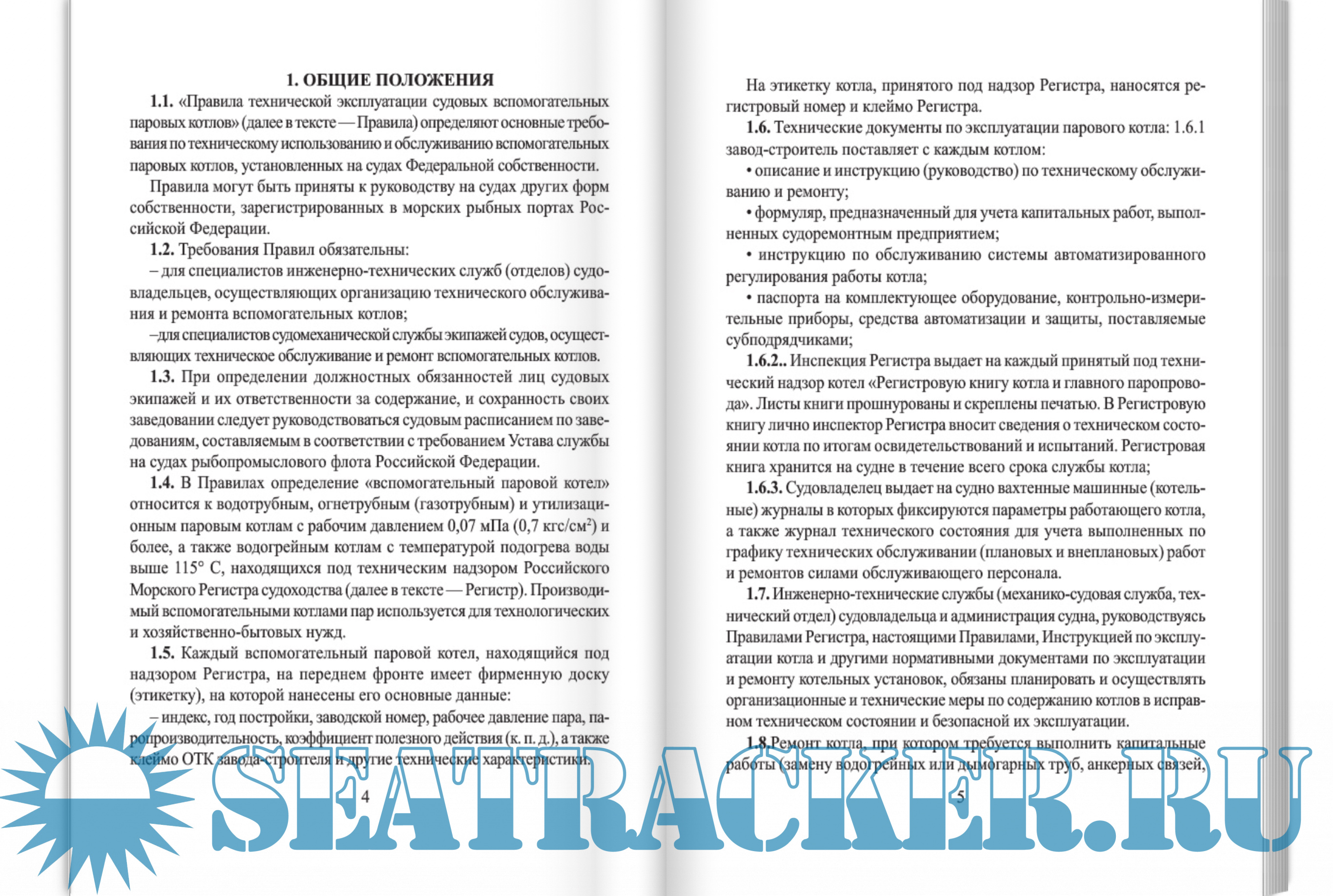 1.1. «Правила технической эксплуатации судовых вспомогательных паровых котлов» (далее в тексте — Правила) определяют основные требования по техническому использованию и обслуживанию вспомогательных паровых котлов, установленных на судах Федеральной собственности.Правила могут быть приняты к руководству на судах других форм- собственности, зарегистрированных в морских рыбных портах Российской Федерации.