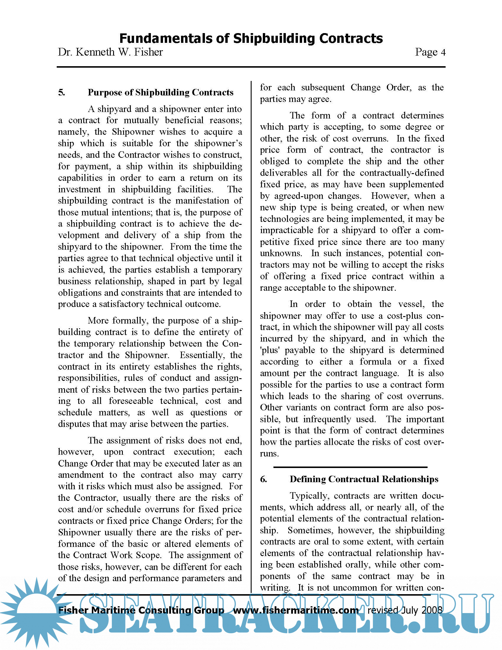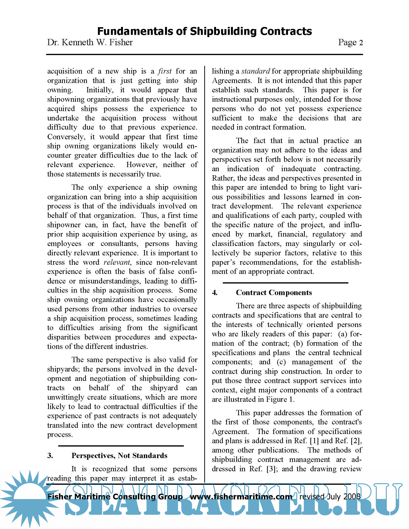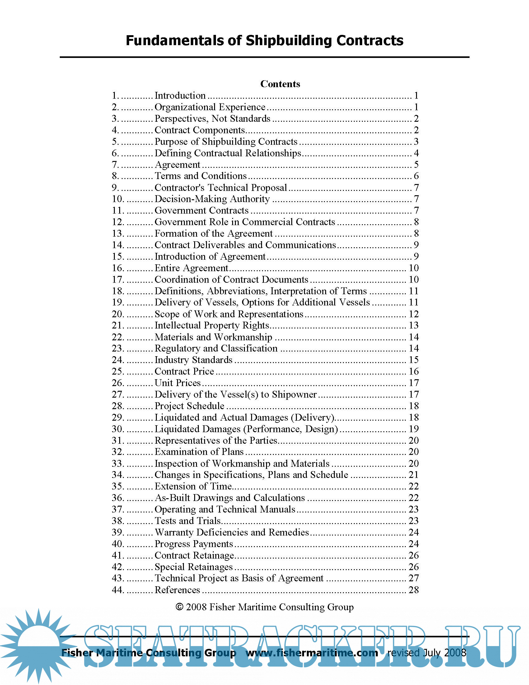Description: This paper provides a description of the elements of shipbuilding contracts, and the purpose of each such element of the contract, all in a manner that is suitable for persons who are not lawyers. The ultimate purpose of this paper, by providing insights based on actual shipbuilding contractual experiences, is to assist readers in the avoidance of contract management difficulties as well as the more significant contractual disasters.
