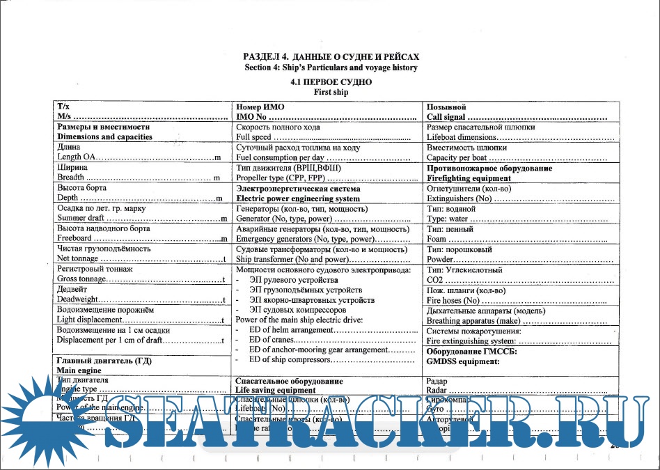 Раздел 4. Данные о судах и их рейсах (Section 4: Ship’s Particulars and voyage history)...............................................................................................26