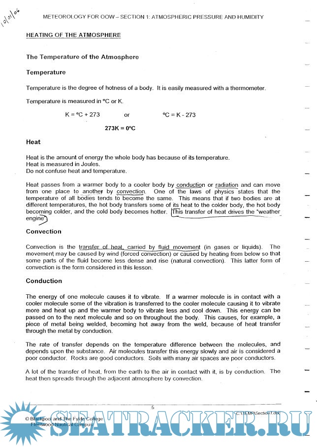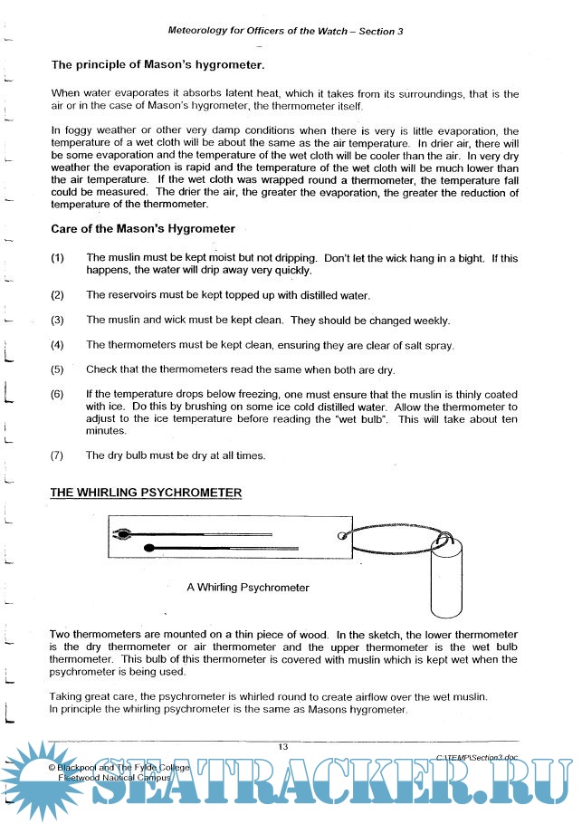 Year: 2006 Language: english Author: Blackpool and The Fylde College Fleetwood Nautical Campus Genre: Training courses Publisher: Blackpool and The Fylde College Fleetwood Nautical Campus Format: PDF Quality: OCR with errors Pages count: 246 Description: Section 1: Atmospheric pressure and humidity. Section 2: Pressure Systems, Winds and Currents. Section 3: Instruments, Observations and Coding.