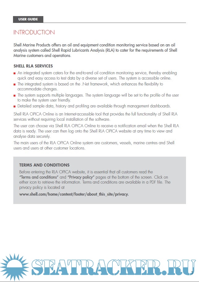 Description: Shell Marine Products offers an oil and equipment condition monitoring service based on an oil analysis system called Shell Rapid Lubricants Analysis (RLA) to cater for the requirements of Shell Marine customers and operations.