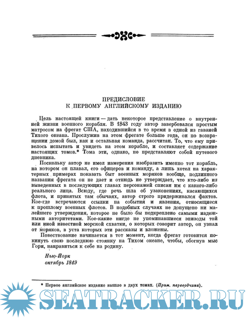 Перевод выполнен по изданию: Herman Melville. White-Jacket, or The World in a Man-of-War. Edited with an Introduction by A.R. Humphreys. (Classic American Texts. General Editor Douglas Grant). Oxford University Press, 1966.