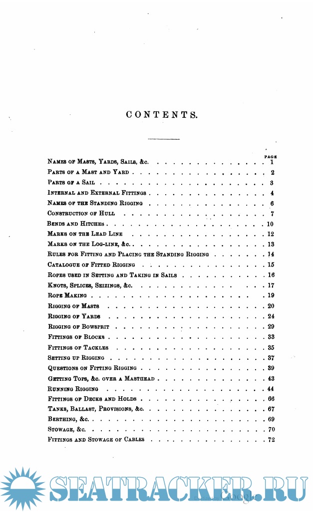 Year: 1860 Language: english Author: Nares G.S. Genre: Guide Publisher: J. Griffin ISBN: ISBN missing Format: PDF Quality: Scanned pages Pages count: 232 Description: Containing Practical Rules for Fitting and Placing Riggings, Managing Sails, etc, Complete illustrations of all The Standard Riggings, The Knots, Bends and hitches, in Use and A Catechism of Rigging Ships, Boat Sailing, Bending, Reefing, and Furling Sails, working Anchor Gear, Manoeuvring . Used on Board H.M.S Britannia, With The Sanction of the Lords Commissioners of The Admiralty. Additional info: Vice-Admiral Sir George Strong Nares KCB FRS (24 April 1831 – 15 January 1915) was a Royal Navy officer and Arctic