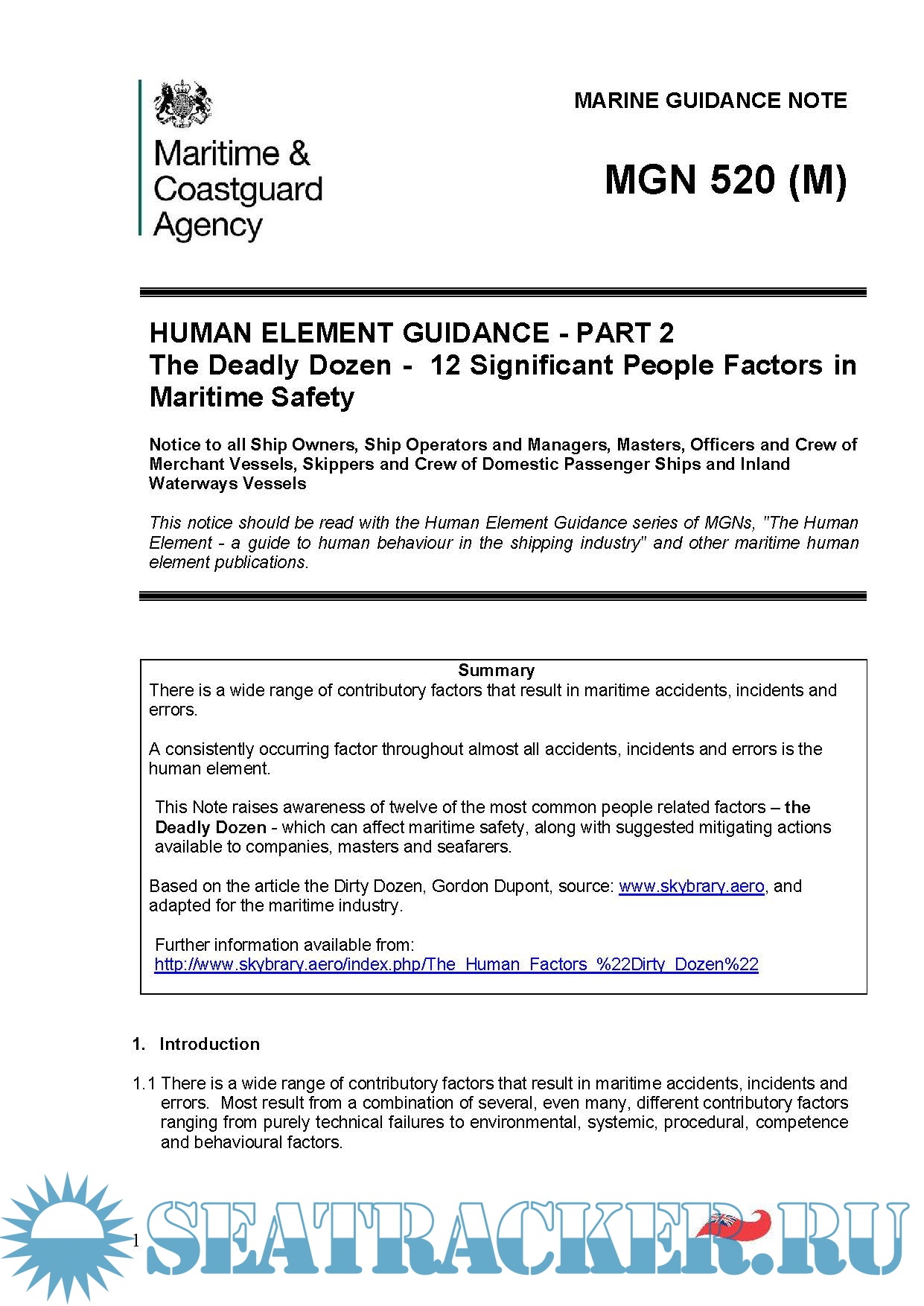 1. Human Element Guidance Part 1, MGN 505 (25 pages), Published 31 March 2014 - Last updated 6 January 20172. Human Element Guidance Part 2, MGN 520 (17 pages), Published 5 January 2017