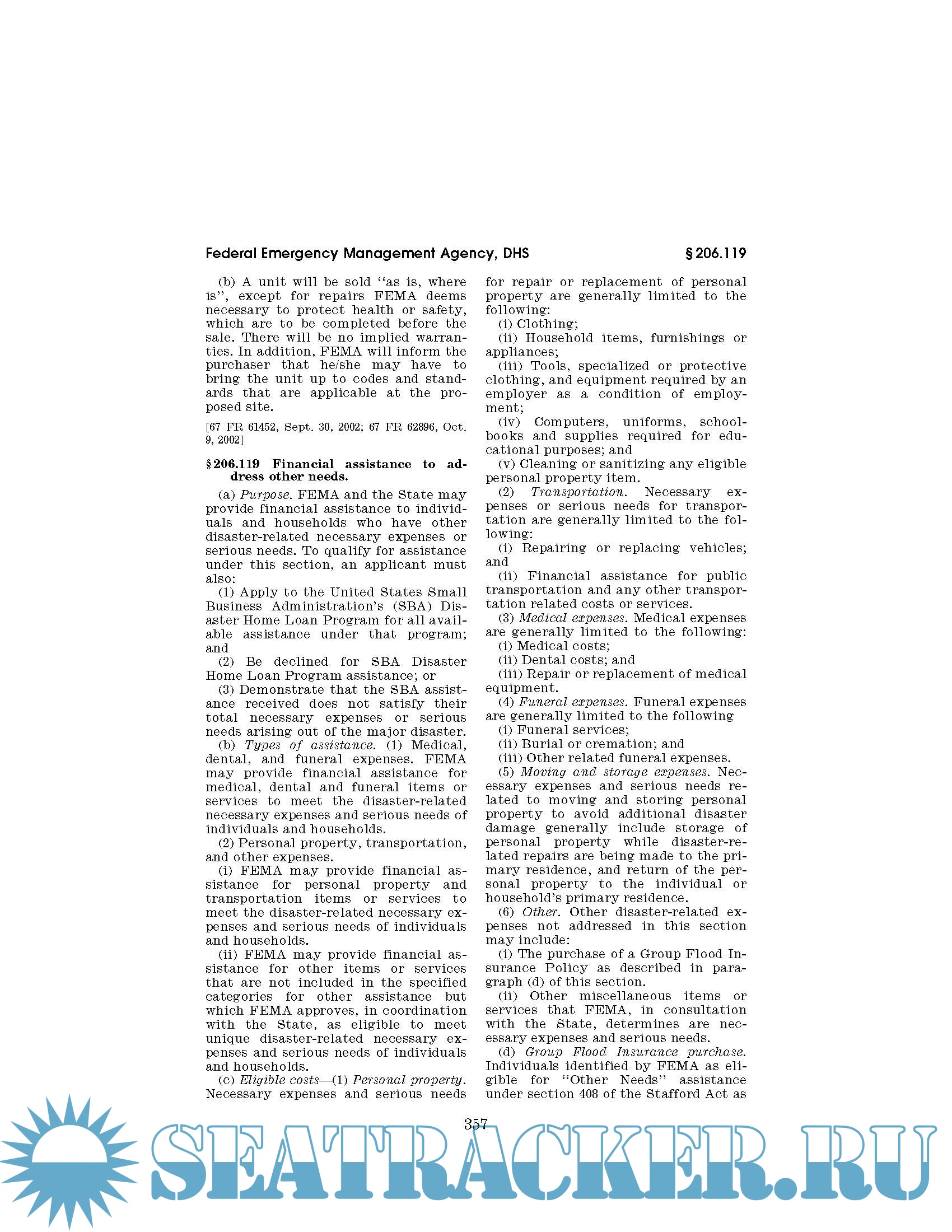 Description: Code of Federal Regulations CFR Title 44 - Emergency Management and Assistance Parts 1 - 499. October 1, 2019