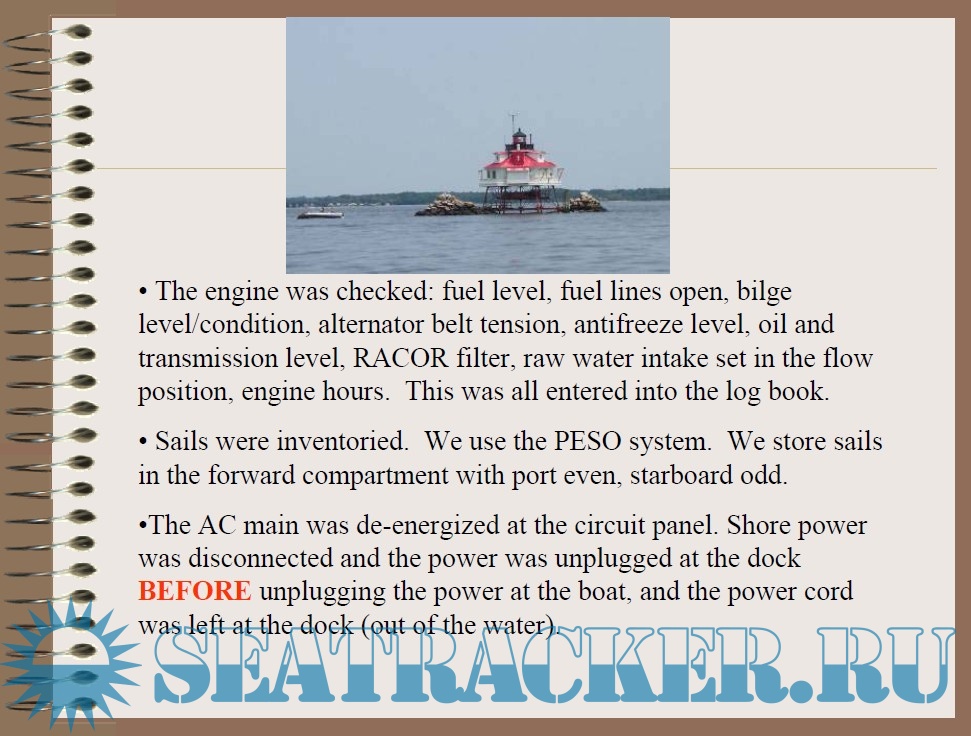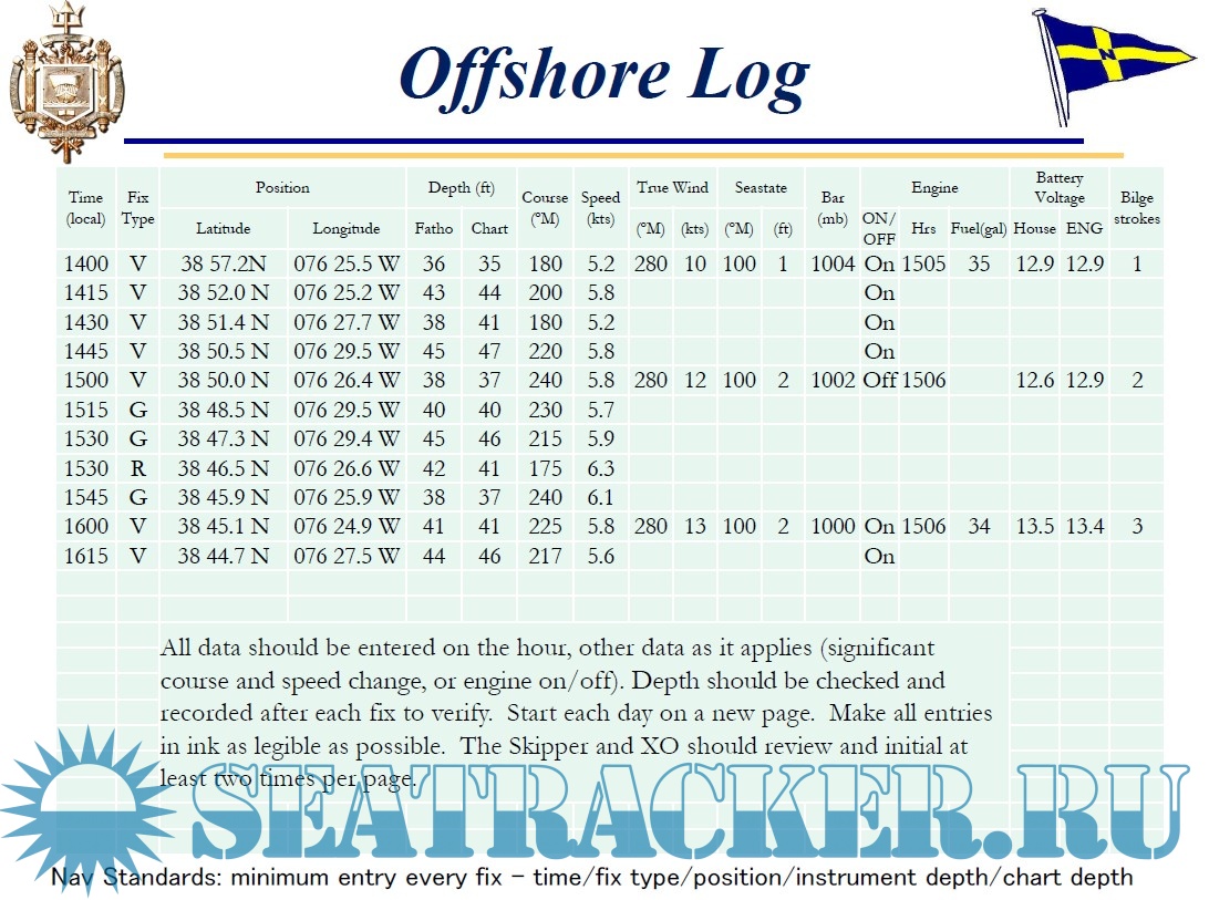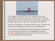 Lectures Common Sailing Discrepancy Report Standard Operating Procedures (SOP) for Large Sail Training Craft Equipment MkII Electronics Electrical Training Navigation Chart Prep Check List Intro to Navigation Navigation 101 Navigation 102 Rules of Road Navy 44 Navy 44 MK II Information • Electronics Manuals - FURUNO NAVNET TZT14 - FURUNO AIS FA50 - FURUNO Weatherfax - IC M506 VHF - ICOM M802 SSB Radio Navy 44 MK I Information • Systems Lecture • Sail Configurations • How to rig the Preventer • Basic Sail Trim • Wind ranges for sails • Electronics quick reference • Quick reference for operating the stove • Chinese mooring the Navy 44 • Back and Fill on a Navy 44 • Flooding vs Bilge pumps • An orientation on the Navy 44 • Getting a Navy 44 underway • Tech manuals - GPS (Garmin 152) - HF SSB (SEA 222) - Radar (R20) - Sailing Instruments - Hecta Depth (NA 1-8) - Sailing Instruments - Hornet 4 (NA 1-8) - Sailing Instruments - Hydra 330 (NA 9-20) - System Voltage Status Monitor - VHF (Icom 100) - VHF (Icom 120) - Weatherfax - Electric Bilge Pump - Manual Bilge Pump - FW Foot Pump - LPG Solenoid - Racor filter - Reefer (Technautics) - Shower Sump Pump - Steering (Edson) - Throttle Control - Westerbeke Diesel - Winches Navy 26 • Navy 26 Standard Operating Procedures • Proficiency Sailing Instruction Sailing Guides • Tacking • Gybing • Man Overboard Prevention, Preparation, and Victim Procedures • Man Overboard Recovery (Non-Spinnaker) • Man Overboard Recovery (Spinnaker) • Headsail Changes • Reefing • Shaking a Reef • Rigging Storm Sails • Rigging Spinnaker • Setting and Flying the Spinnaker • Gybing the Spinnaker • Dousing the Spinnaker • Diagrams - Deck - Top View - Deck - Side View - Cockpit Layout - Cabin Layout - Sail Plan - Thru-hulls - Polars • Troubleshooting Systems - Engine - Bleeding the Engine - Head • Pictures - Aerial view of the boat sailing - View of the bottom out of the water - View looking aft toward quarterberth - View looking forward into forepeak - View of the prop & shaft - View of the fwd bottom - View of the aft bottom Navy D-Qual • Coastal and Offshore Personnel Qualification Standard • Navy D Qual Study Guide