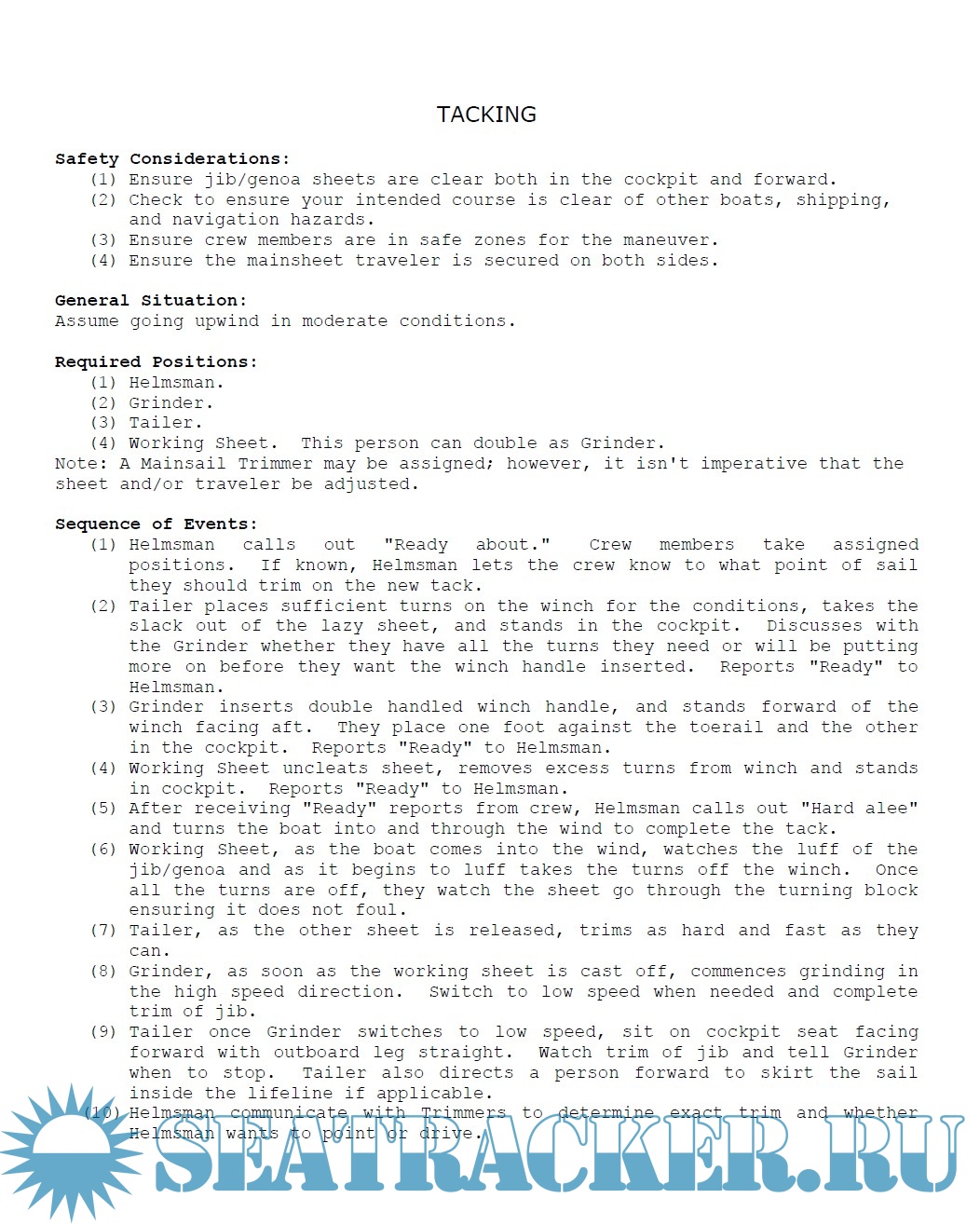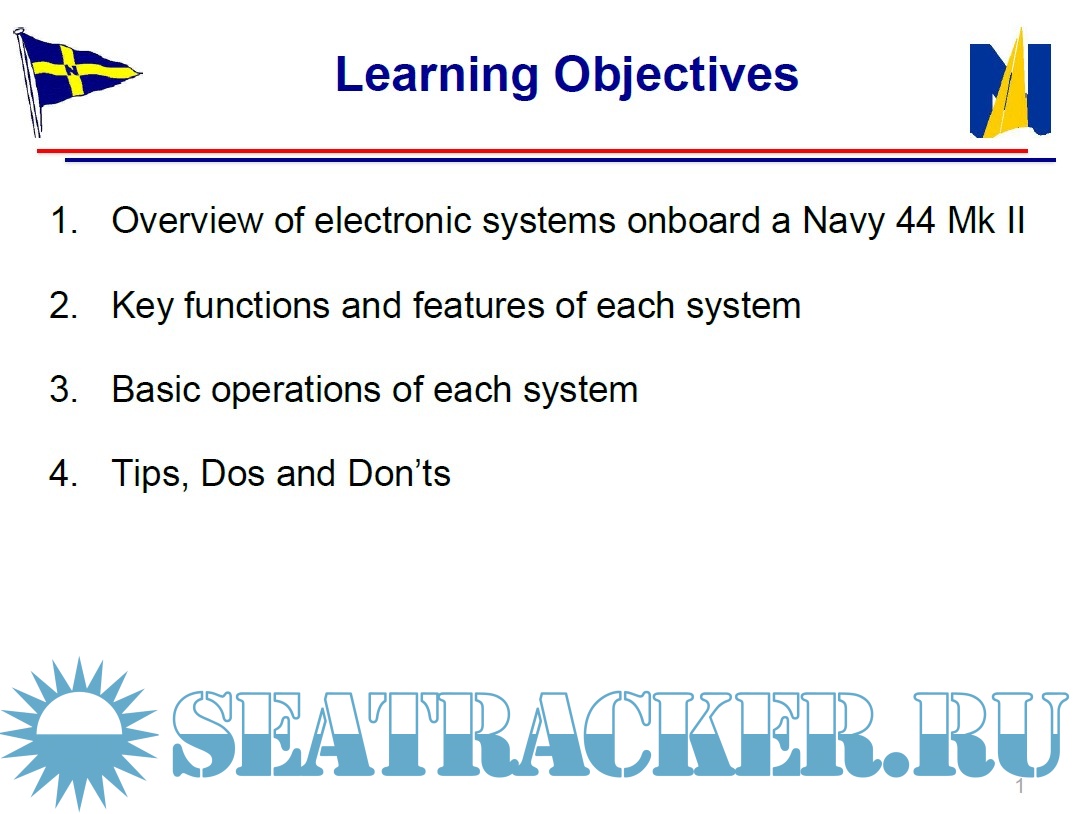 Year: 2019 Language: english Author: USNA Sailing School Genre: Training courses Format: Other Quality: eBook Pages count: > 500 Description: US Naval Academy Sailing Center has a large instruction program from the beginning to coastal and offshore navigation. This post has more than 60 files (pdf, docx, images, diagrams) covering every aspect of the trainig. Lectures on Navigation, Standard Operative Procedures, Checklists, Safety & Emergency, Onboard systems, Electronics, Rules of Road, Rigging, Maneuvering, Boat Orientation, Sail Configuration and Trimmings, as well as qualification standards as Coastal Skipper (D-CS) and Offshore Skipper (D-OS). The NAVY 44 - a seaworthy, strong, and stable design - is the latest of three generations of one-design offshore cruiser/racers dedicated to training midshipmen. The Navy 26 is a Day Cruiser with a wide range of uses, from teaching the basics to proficiency sailing. Additional info: Folder with sub-folders, about 76 MB Please, look at my releases! https://seatracker.info/search....=1&uid=44999