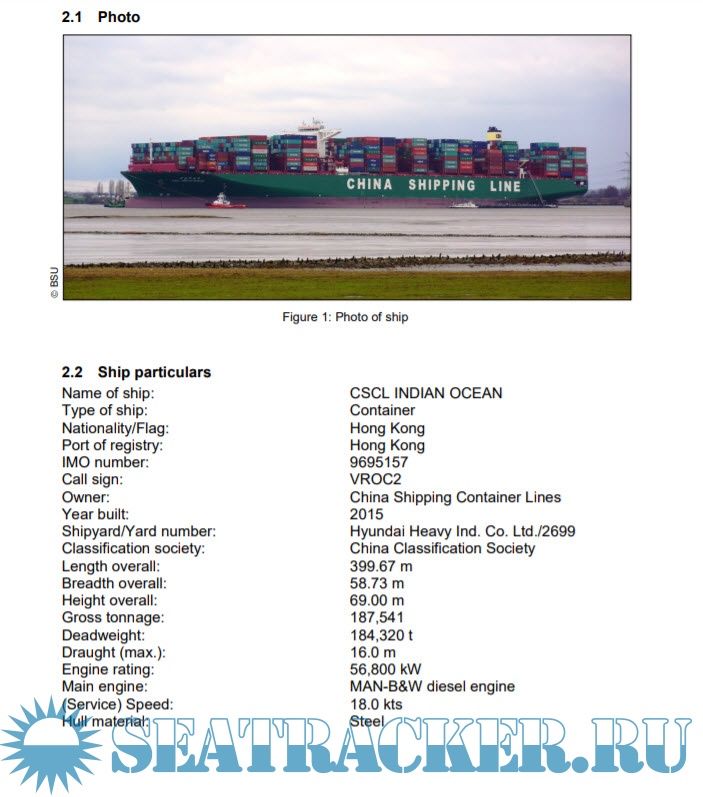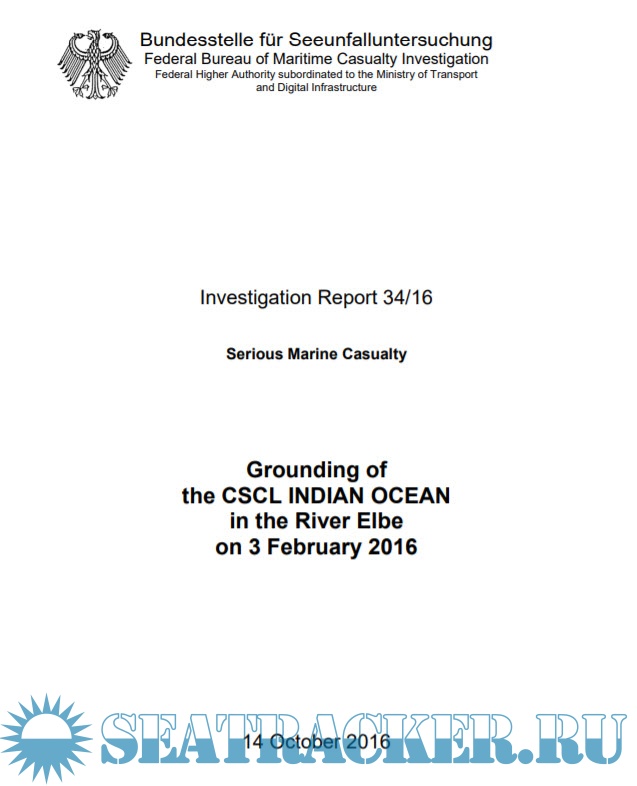 Description: Investigation Report 34/16. Serious Marine Casualty. Grounding of the CSCL INDIAN OCEAN in the River Elbe.