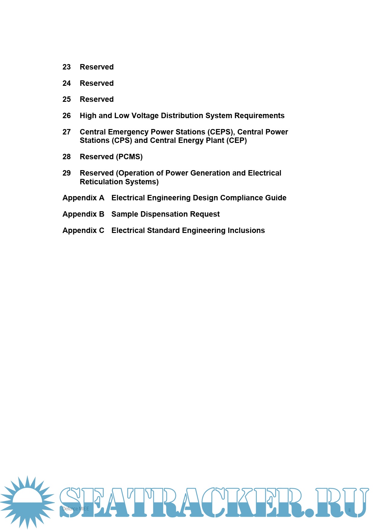 Description: The Manual of lnfiastructure Engineering - Electrical (MIEE) is the primary Defence policy document when determining electrical engineering requirements for Defence facilities and infrastructure. Its provisions are mandatory.