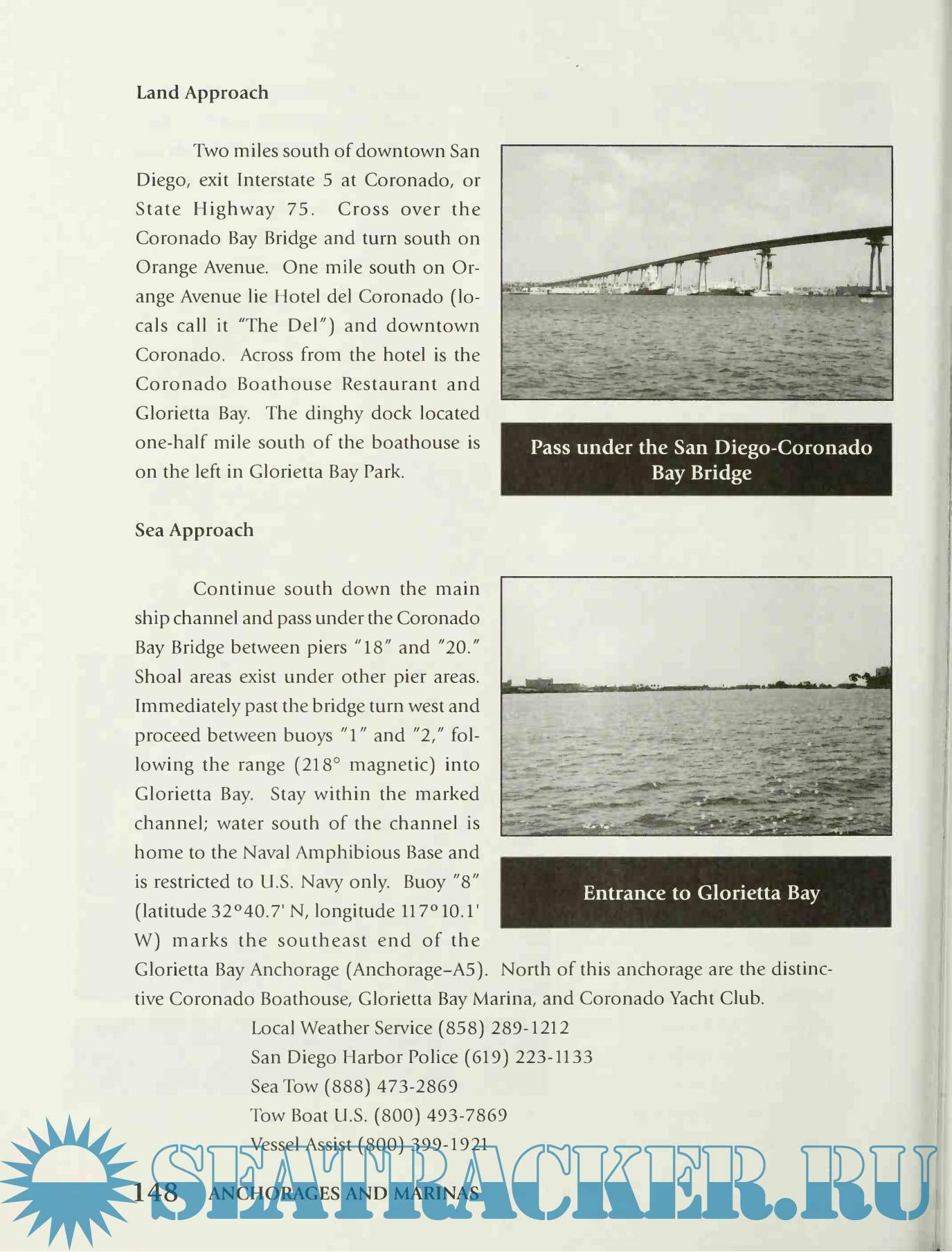 A concise history of the development of each local area provides interesting insight for greater appreciation of San Diego Bay. Local tourist information is provided for all the popular sites along the water and throughout the county. Recommendations are found throughout the volume regarding the best places to eat and explore. Local telephone numbers are supplied for your convenience, as well as up to date information on local services within walking distance from your berth. Important boating businesses such as boating supply stores, boatyards, launch ramps, laundry, banks, post offices, etc., are included.