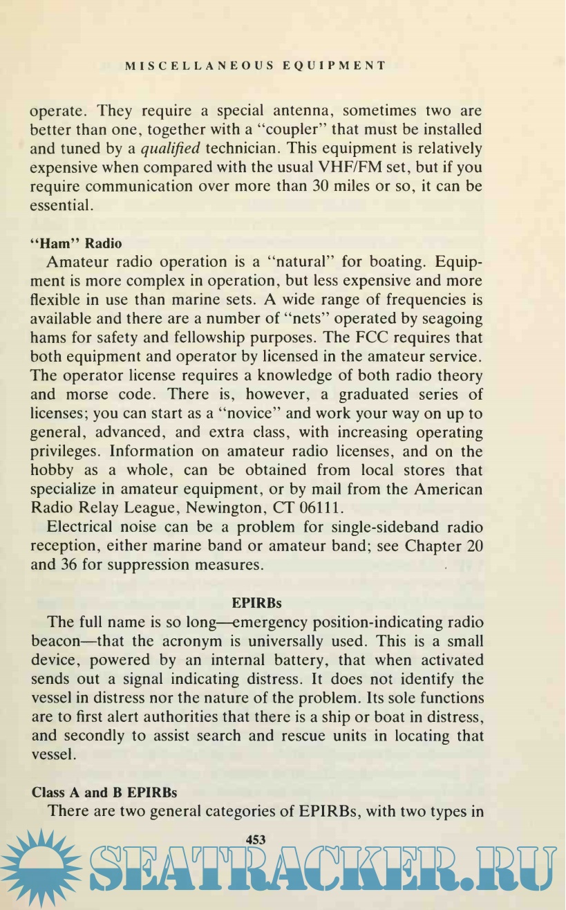 Year: 1981 Language: english Author: Miller C., Maloney E.S. Genre: Manual Publisher: Hearst Marine Books ISBN: 0-87851-805-3 Format: PDF Quality: Scanned pages Pages count: 515 Description: This book, first published in 1973, found a ready audience in the boatkeeper who enjoys doing his own maintenance. The continuing demand for the work has been gratifying, but the continuing advances in technology during the past years has made it necessary to re-issue it in an up-dated version. It is still a book about pleasure boat electricity, the circuits carrying it from its source, and those distributing it throughout the boat. Both alternating and direct current circuits are covered in a way that attempts to help the yachtsman understand and care for his boat's electrical systems. To this purpose, circuits are first described, then workable approaches to maintenance or rework are suggested. The text spills over into engine mechanics simply because the most vital parts of the engine are electrical. Consequently, ignition and starting circuits, although strictly engine components, become part of the work. Added in this new edition (Part 2) are such related topics as electronic equipment selection, installation and maintenance; advances in marine storage batteries and charging circuits; additional shop practices; and "hints and kinks" of boat electrical/electronic work.