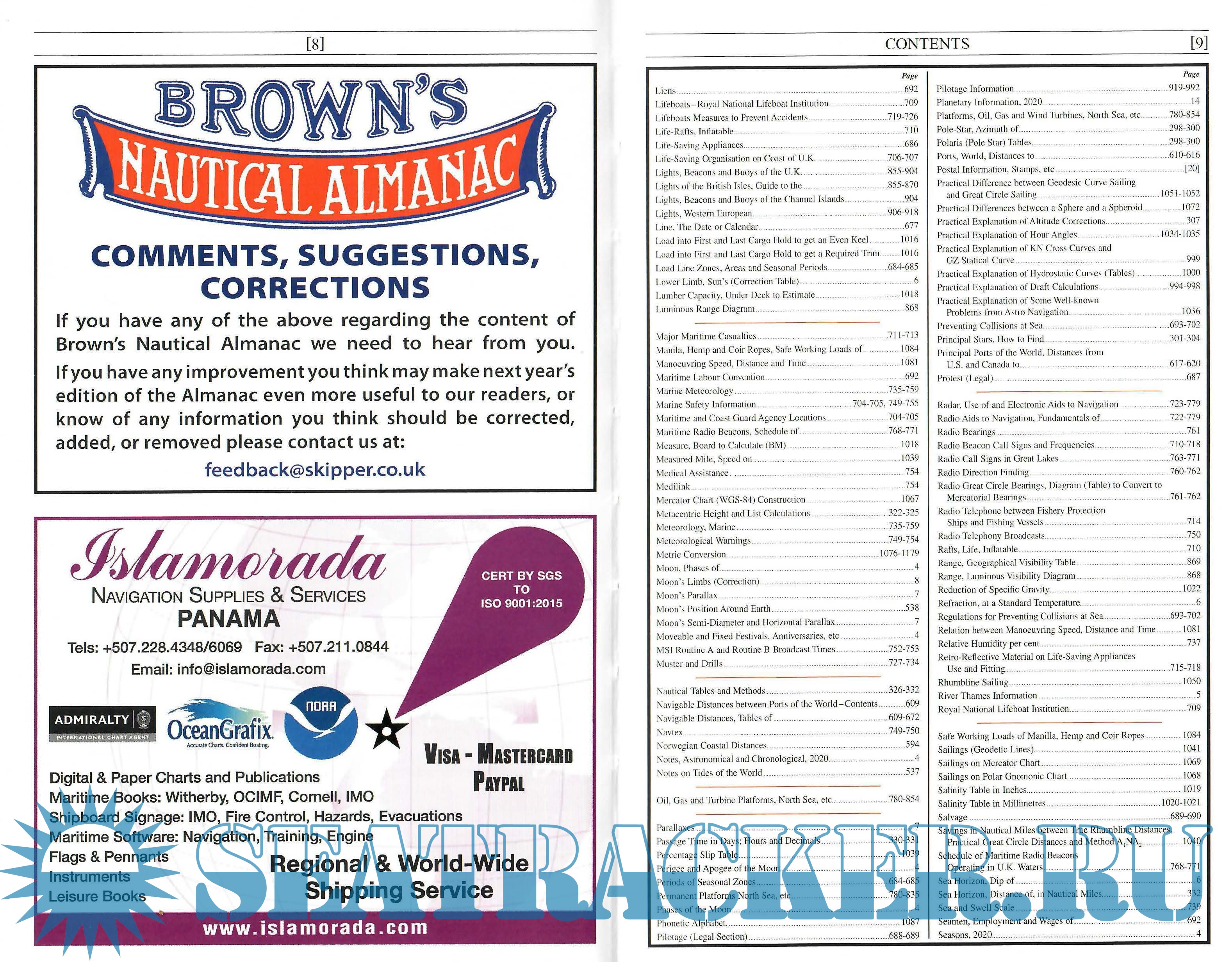 Description: Brown's Nautical Almanac 2020 contains a full nautical almanac for sun, moon, stars and planets for 2020.