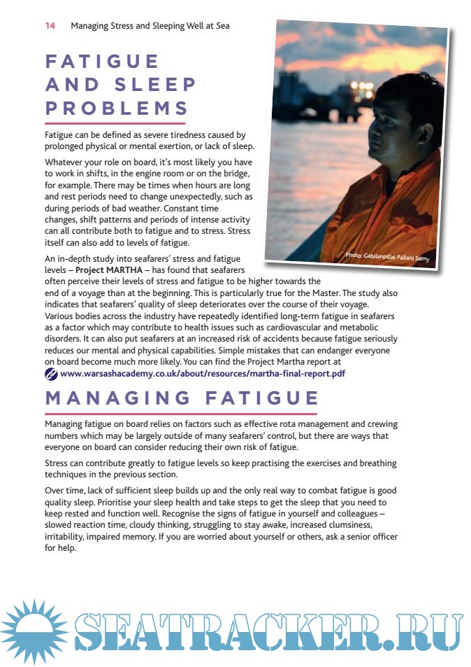 This guide provides some useful information to understand stress and its effects, and offers practical strategies to recognise stress and cope effectively. The guide also provides some advice on how to manage fatigue which may affect you when you’re away at sea and how to get the most from your sleep.