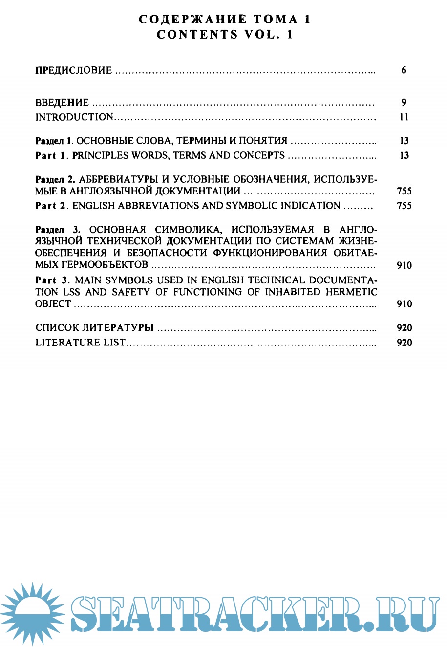 Описание: Первый том содержит: англо-русский словарь основных слов, терминов и понятий; аббревиатуру и основную символику, принятую в англоязычной технической документации по системам жизнеобеспечения и безопасности. Второй том включает: русско-английский словарь, аббревиатуру и основную символику, используемую в российской технической документации по средствам жизнеобеспечения и безопасности; англо-американские единицы измерения с переводом их в метрическую систему; сведения об организациях, принимающих участие в разработке регенеративных систем жизнеобеспечения всех типов и областей применения; нормативные характеристики по предельно допустимым концентрациям вредных микропримесей в воздухе обитаемых объектов, питьевой и сангигиенической воде; средние величины нагрузок на системы жизнеобеспечения и расчетные нормативы выделения человеком продуктов жизнедеятельности. Словарь-справочник предназначен для специалистов инженерно-технического, медикобиологического и экологического профилей, участвующих в процессах разработки и эксплуатации систем жизнеобесnечения человека в области авиационной и космической техники, подводного флота, подземных и наземных гермаубежищ и т.д., может быть полезен для инженерно-технических и биомедицинских работников, специализирующихся в разработке экологических систем и средств обитания человека на Земле.