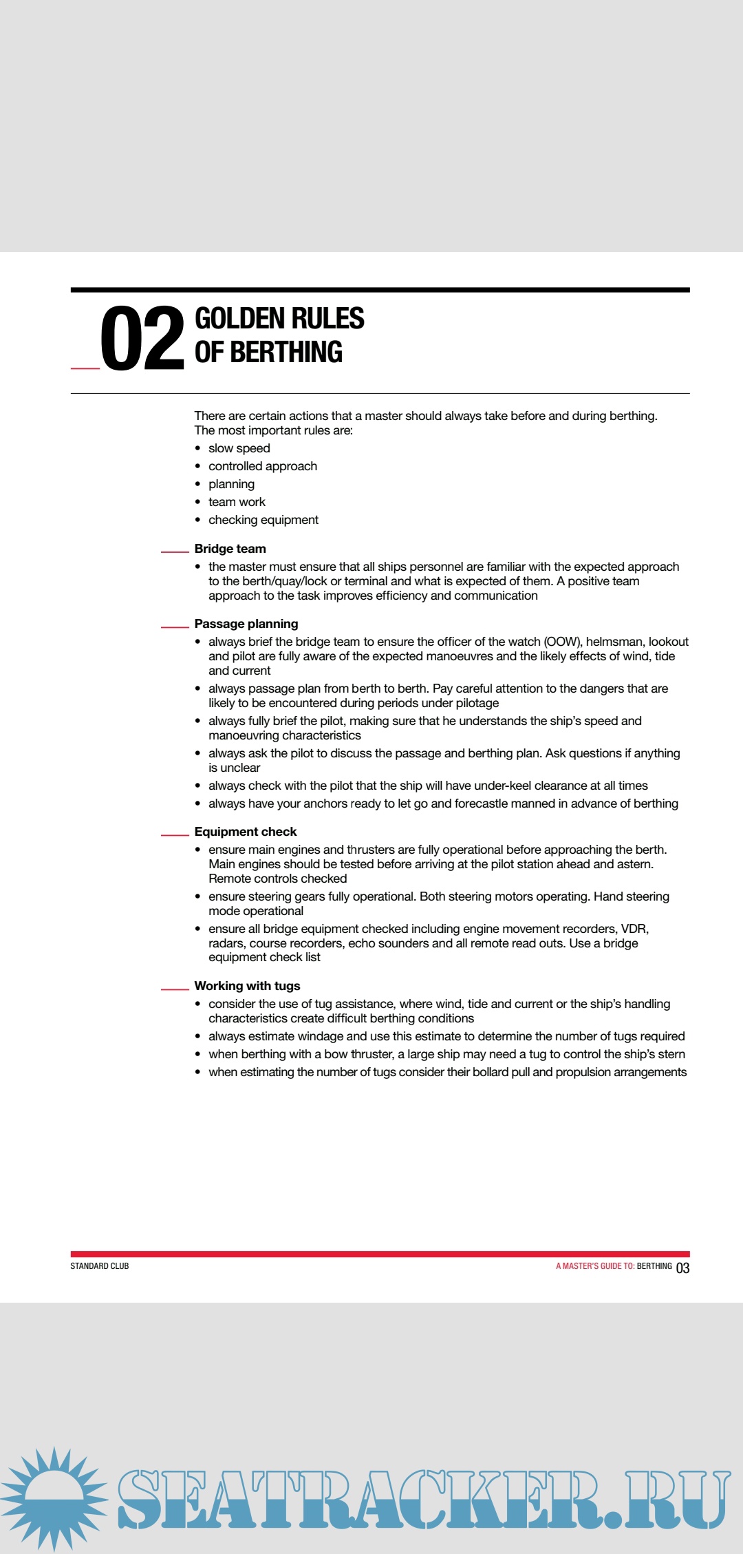 Year: 2012 Language: english Author: The Standard Genre: Guide Format: PDF Quality: eBook Pages count: 40 Description: Ship handling is an art rather than science.