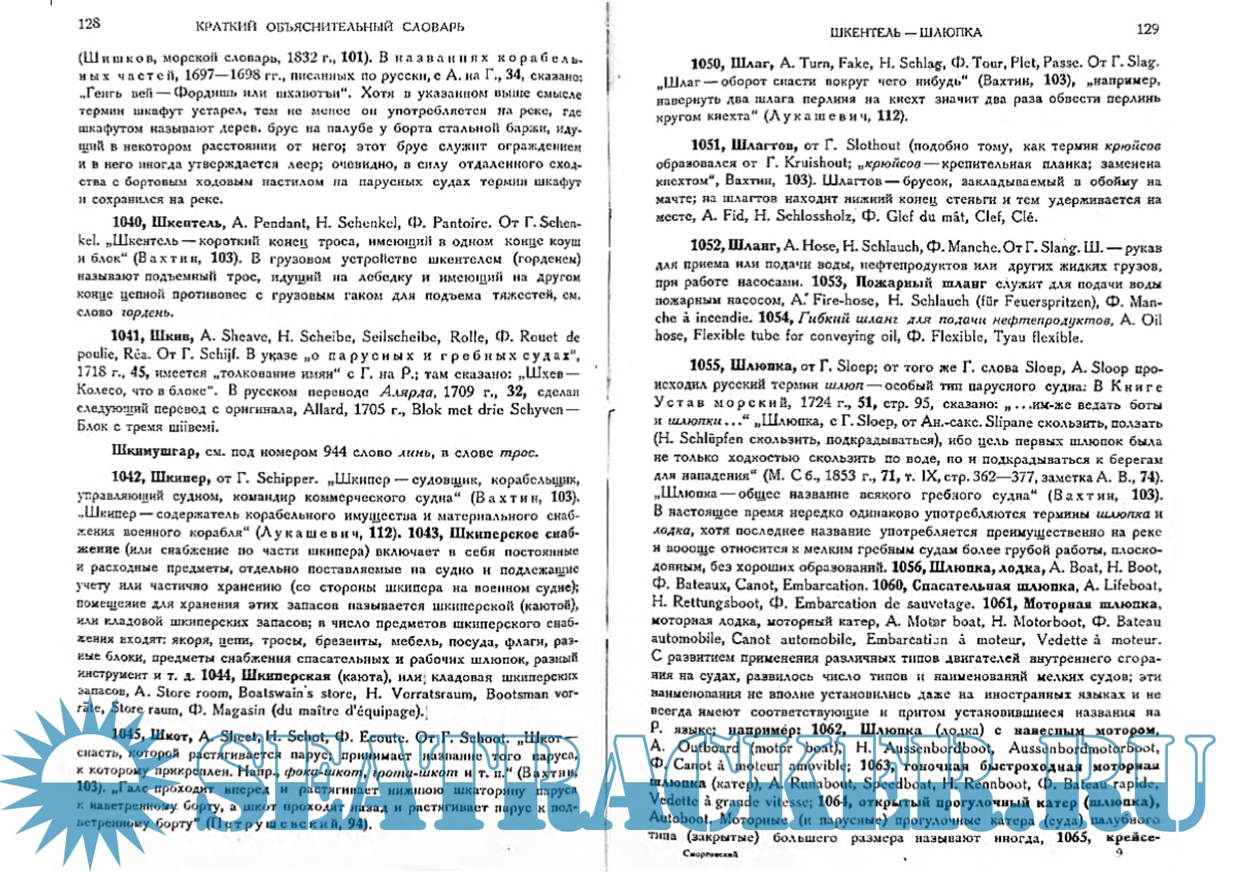 Краткий объяснительный словарь кораблестроительных и некоторых морских терминов нерусского происхождения (с указанием их значения на английском, немецком и французском языках)