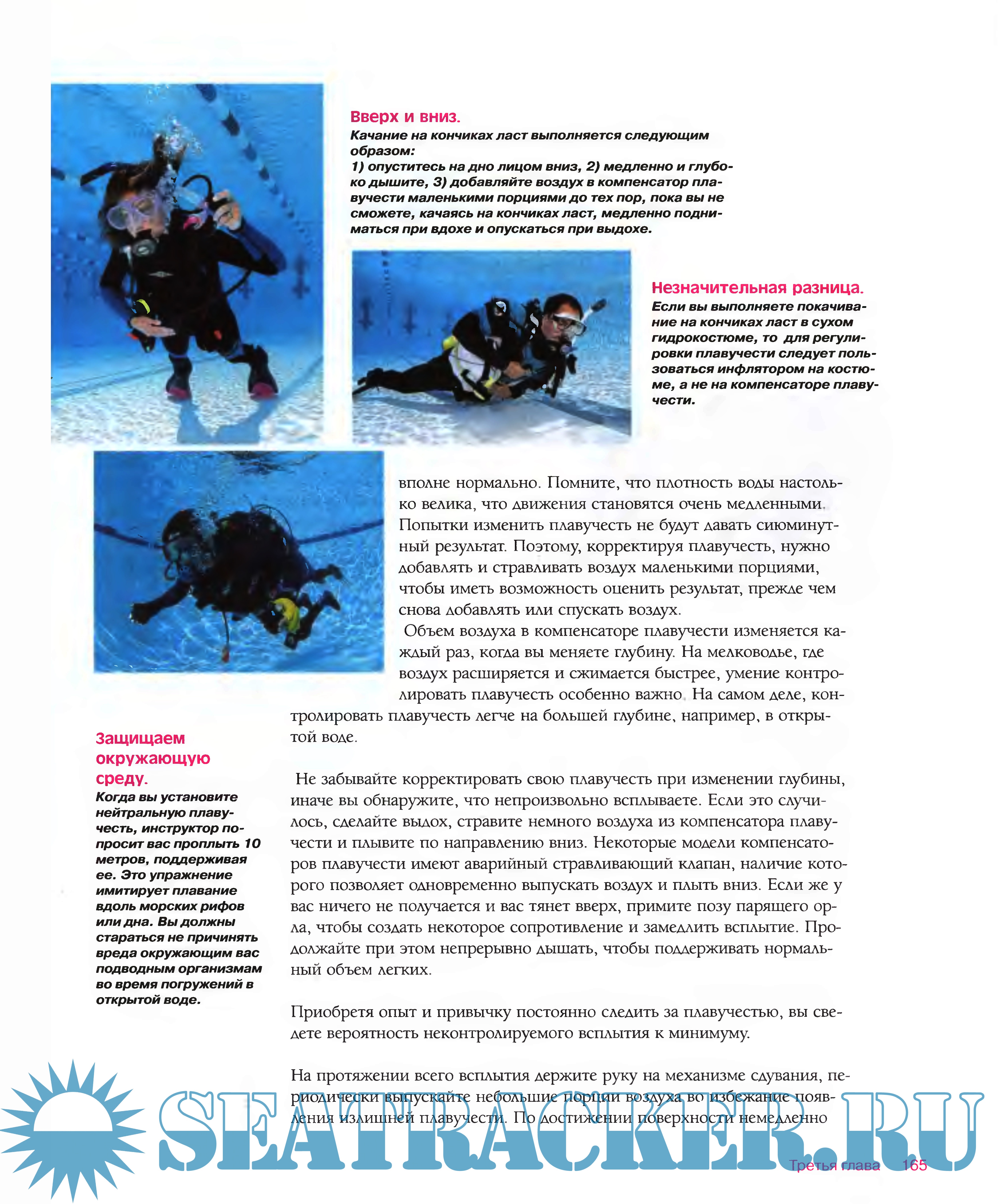 Дайвинг - это вид занятий, сопряженный с риском. Каждый дайвер в отдельности, принимающий участие в любом виде погружений, обязан согласиться с рисками и принять на себя ответственность за свои действия. Автор и издатель (и уж тем более раздающий) не несут никакой ответственности ни перед кем за утери, повреждения, травмы или смерть, вызванные любыми ошибками, пропусками в тексте, а также личной интерпретацией текста дайвером. Любая подобная ответственность не признается. Информация в данном пособии относится к дайвинrу с аквалангом и должна использоваться только как дополнение к утвержденному курсу обучения, который проводит сертифицированный инструктор. Данный учебник не может заменить профессиональный инструктаж и здравое отношение.