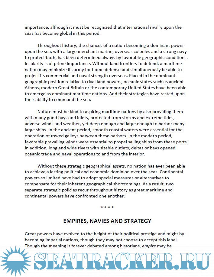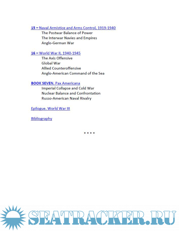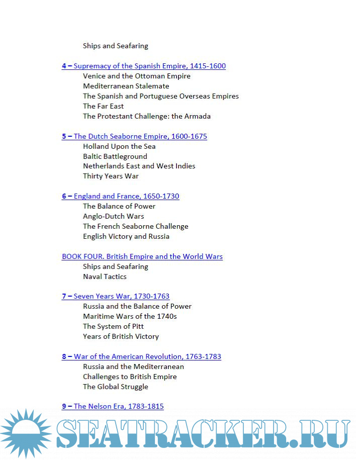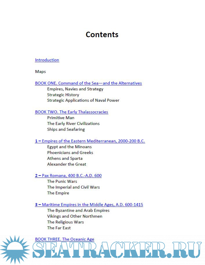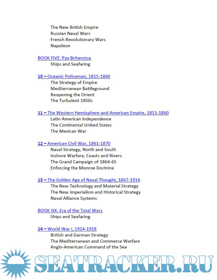 The publication consists of seven major parts covering the command of the sea and different alternatives, oceanic age and early sea-power, total wars era, and other aspects.