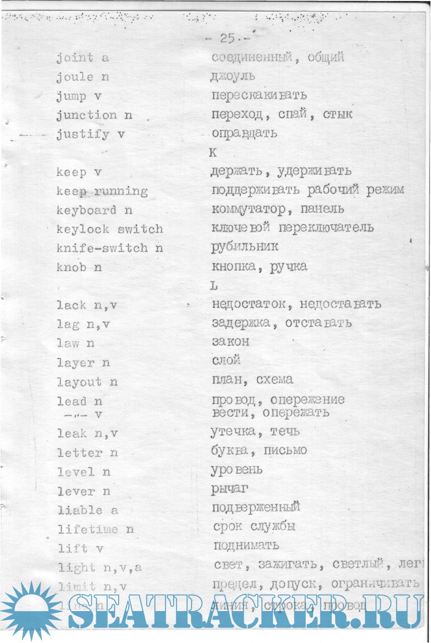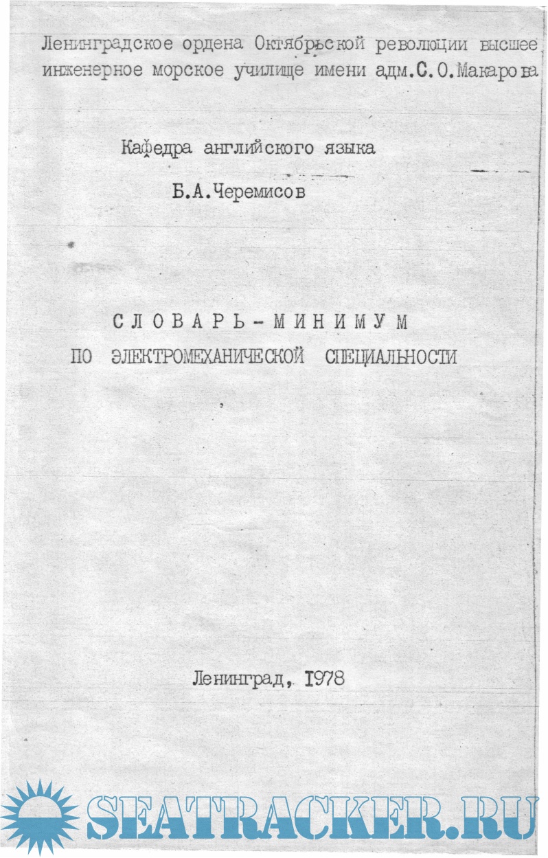 Описание: Англо-русский словарь для курсантов морских ВУЗов, обучающихся по специальности инженер-электромеханик. Полезен электромеханикам морских судов.