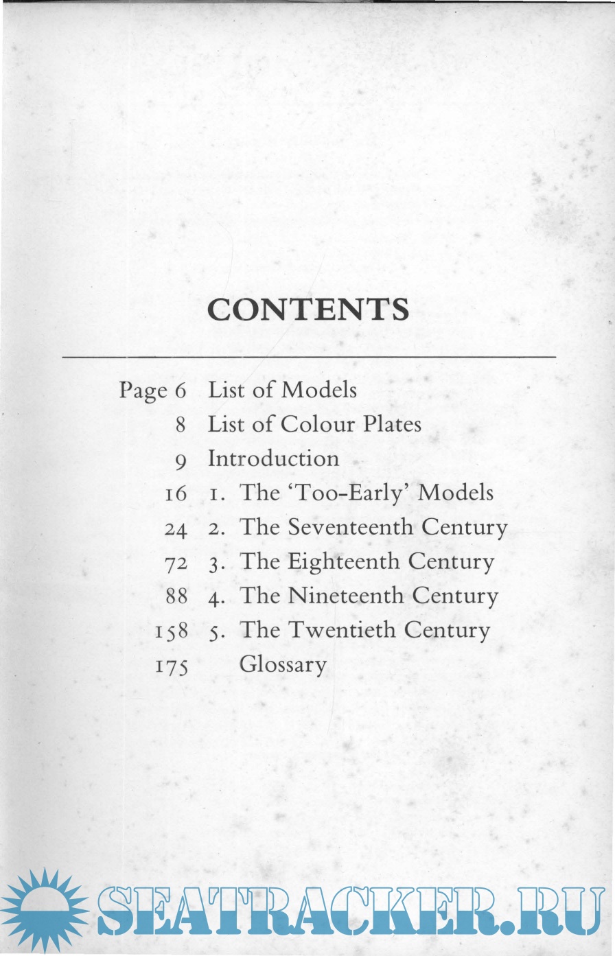 The historical period covered is from 700 B.C. to late 1960's, the types of models include scenic, waterline, full hull and the traditional Admiralty Board dockyard models. With one exception they are all to miniature scales ranging from 100'-1" to 16'1". The data sources, the ships themselves and the models are described in some detail.