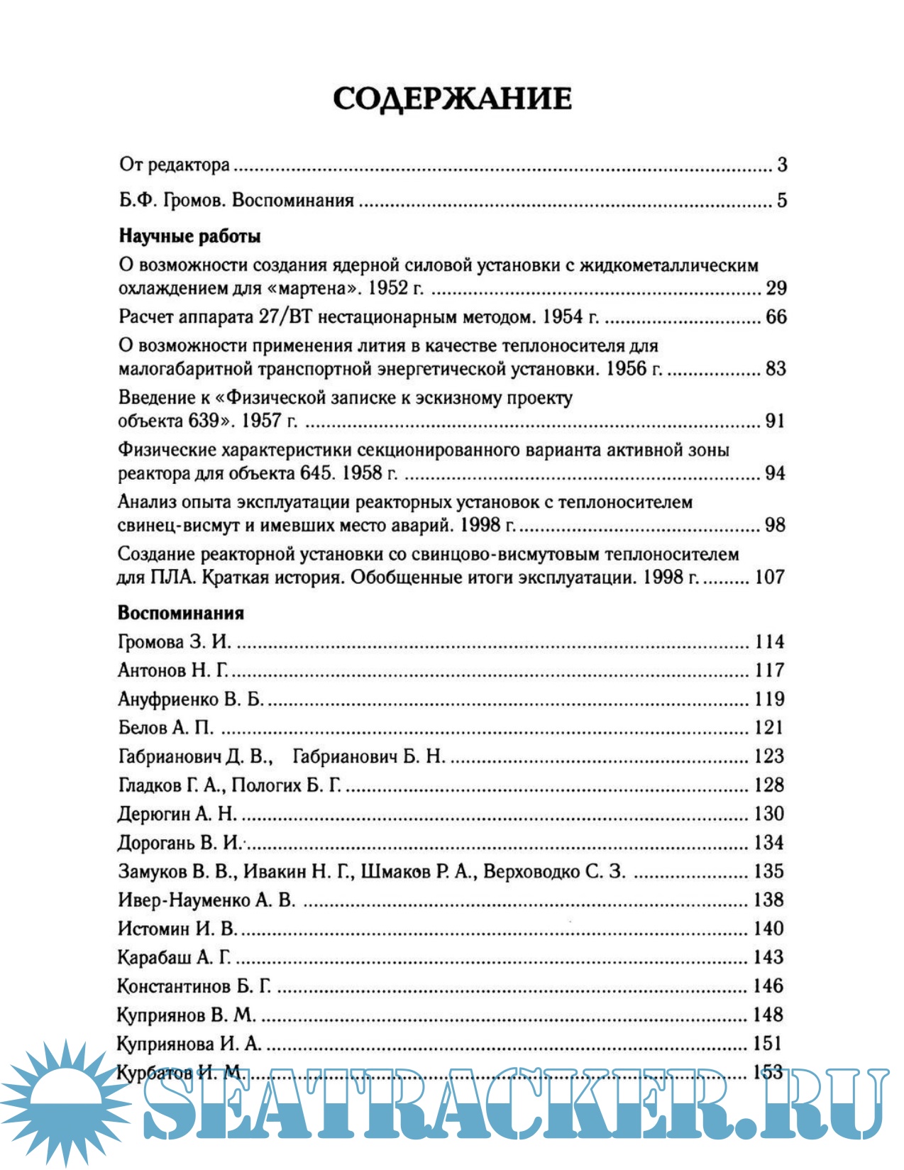 Год выпуска: 2007 Язык: русский Автор: Зродников А.В. Жанр: История Издательство: ГНЦ РФ - ФЭИ Формат: PDF Качество: Отсканированные страницы Количество страниц: 231 Описание: Книга посвящена 80-летию со дня рождения Громова Бориса Фёдоровича - заместителя директора Физико-энергетического института (1972—2000), лауреата Ленинской премии (1961), лауреата Государственной премии СССР, заслуженного деятеля науки и техники РСФСР. Громов впервые в мире обосновал атомную энергетическую установку с жидкометаллическим теплоносителем (ЖМТ), ставшей прообразом последующих реакторов для атомных подводных лодок. В Северодвинске был построена АПЛ проекта 645 с двумя реакторами, охлаждаемыми жидкометаллическим теплоносителем. Лейпунский и Громов курировали все этапы её строительства и монтажа. В 1968 году после нескольких успешных автономных походов в подлёдные северные воды, экваториальные воды и Средиземное море произошла авария на реакторе правого борта, в результате которой погибло несколько человек. Громов взял ответственность за эту аварию на себя и выступил координатором работ по улучшению реактора. В 1954 году стал заведующим лабораторией ФЭИ, в 1964 — директором отделения. В 1972 году, после смерти Лейпунского, стал заместителем директора ФЭИ и возглавил направление ЯЭУ. Создатели атомной подводной лодки проекта 705 (всего было построено семь лодок, (в 1993 году АПЛ проекта 705 была занесена в книгу рекордов Гиннесса) были удостоены Государственной премии СССР. Громов получил премию за научное руководство созданием судовых энергетических установок для этого проекта.