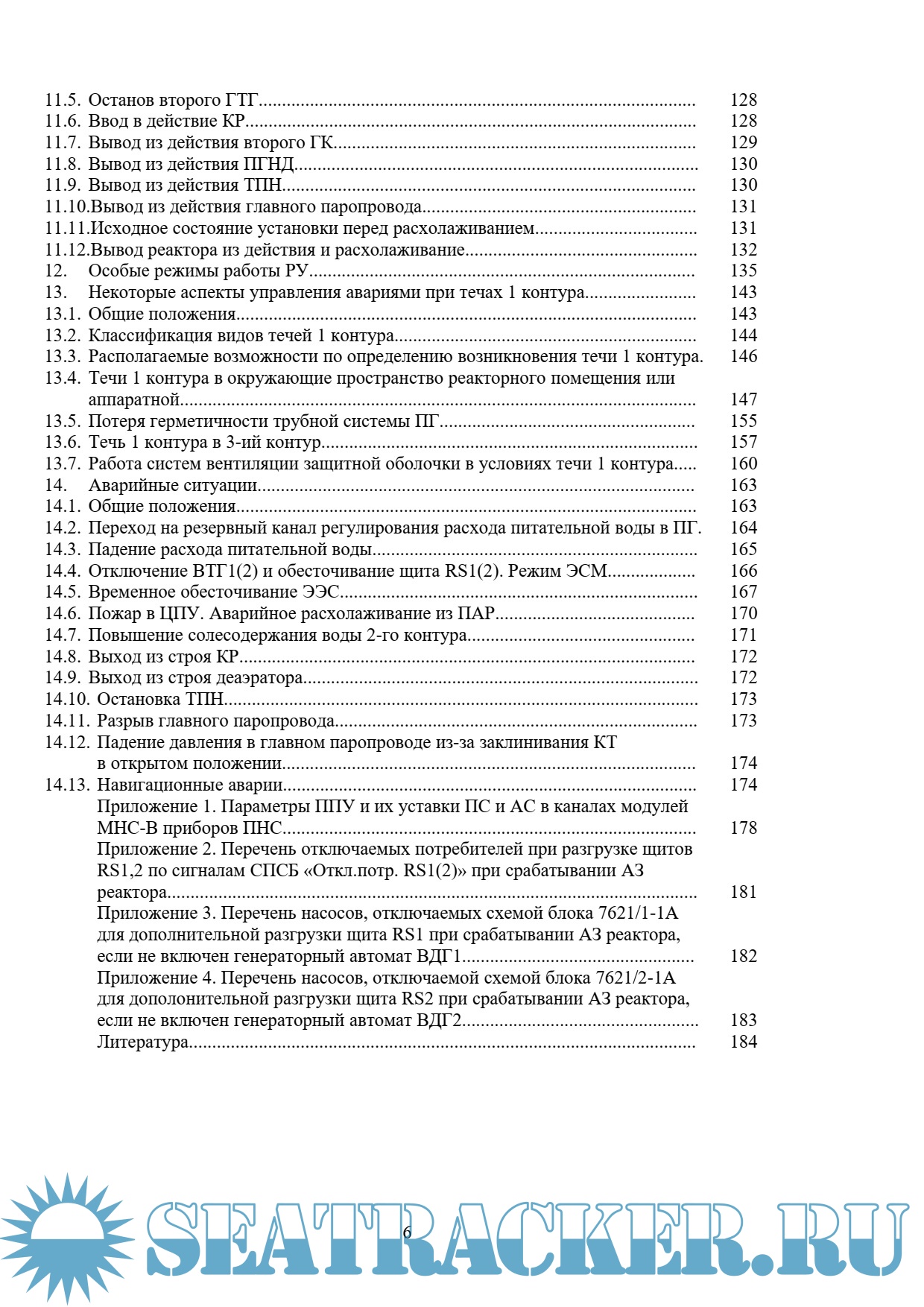 Приложение 4. Перечень насосов, отключаемой схемой блока 7621/2-1А для дополнительной разгрузки щита RS2 при срабатывании АЗ реактора, если не включен генераторный автомат ВДГ2