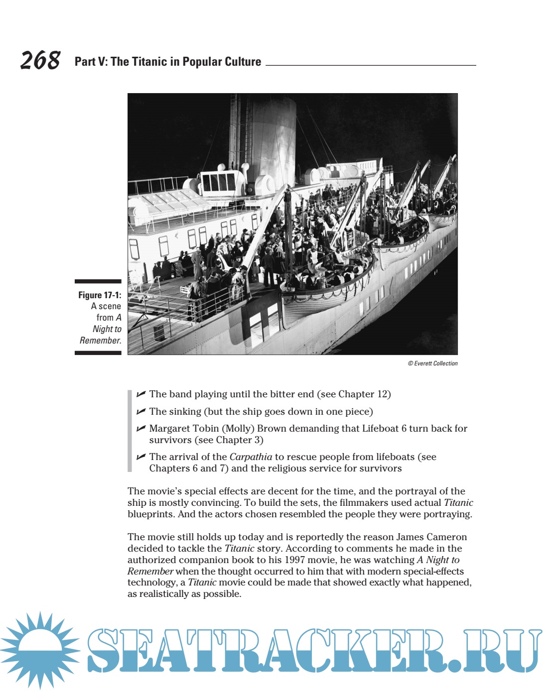 Theories behind the reason for the sinking (does the blame lie with the watertight doors, bad rivets, or crew negligence?), and when and where the ship split in two.