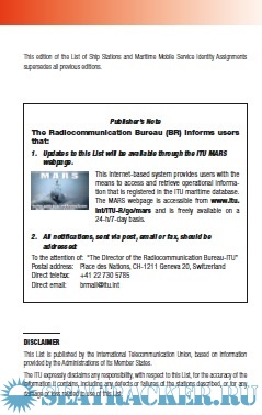 The List of Ship Stations and Maritime Mobile Service Identity Assignments (List V) is a service publication prepared and issued, once a year, by the International Telecommunication Union (ITU), in accordance with provision no. 20.8 of the Radio Regulations (RR).