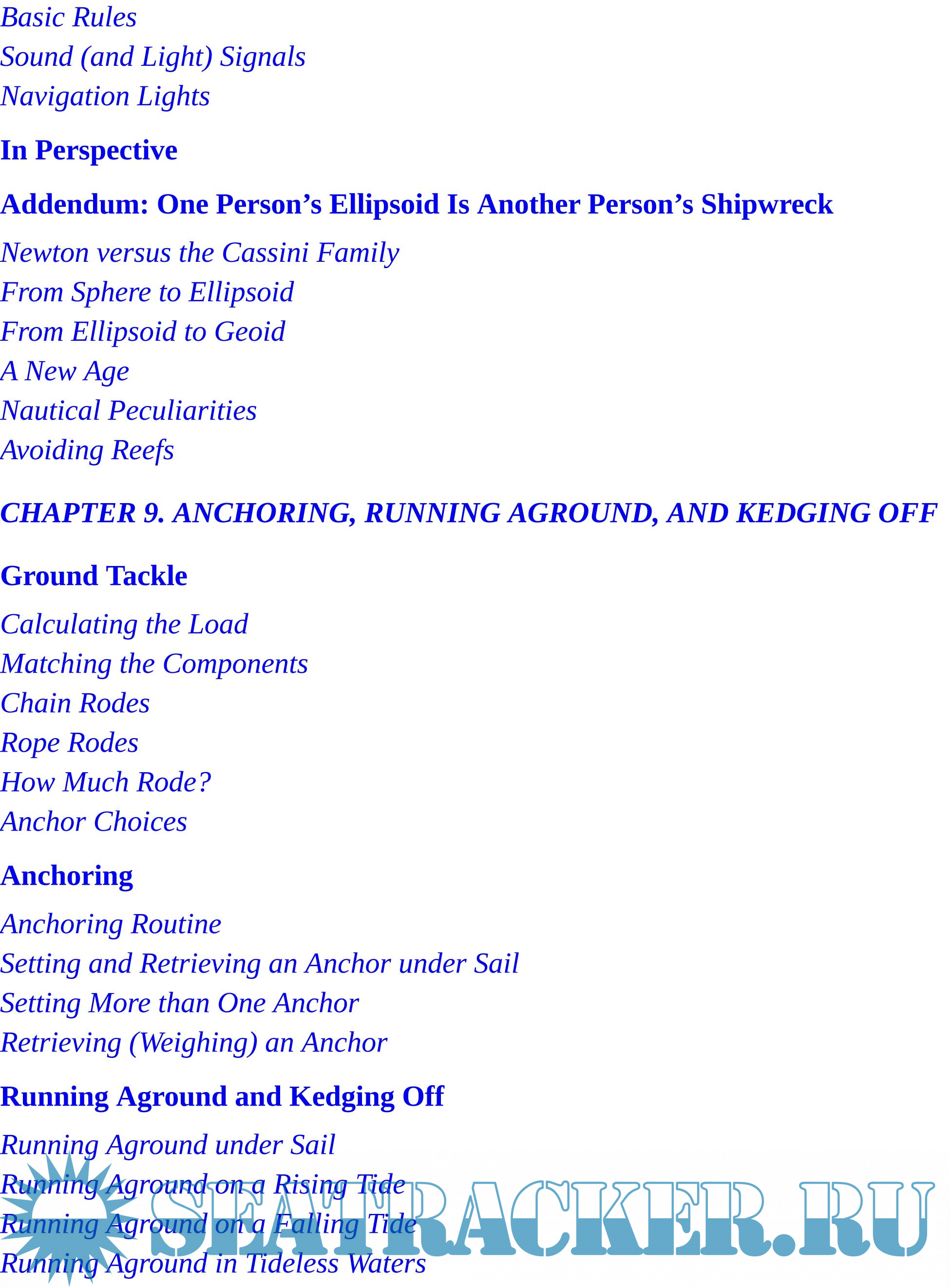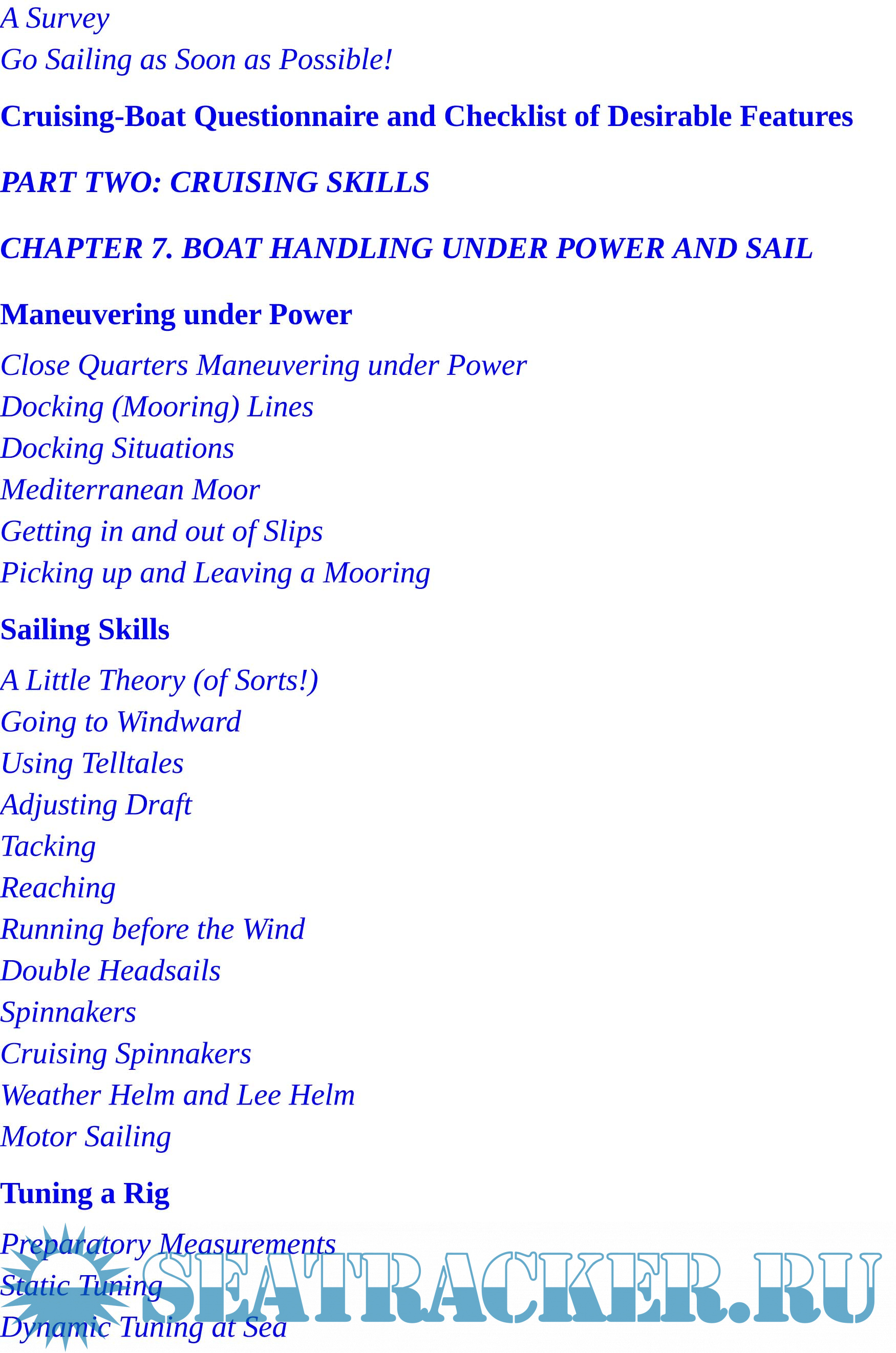 Year: 2001 Language: english Author: Nigel Calder Genre: Handbook Publisher: The McGraw-Hill Companies, Inc. ISBN: 978-0-07-179735-1 Format: EPUB/PDF Quality: eBook Pages count: 1245 Description: The most comprehensive and helpful guide ever written for selecting and equipping a cruising sailboat Whether you re a coastal or offshore cruiser, you ll find your most pressing concerns treated with the know-how that makes for skillful, confident cruising in Nigel Calder s Cruising Handbook. The author -- one of the most respected marine how-to authors on either side of the Atlantic, and author of the universally admired Boatowner's Mechanical and Electrical Manual, -- walks you through all key technical and practical aspects of modern cruising systems and equipment, providing you with a summary of the skills necessary for safe, enjoyable sailing. The first half of the book includes an easy-to-use tabular method for evaluating a boat's suitability for cruising; ideas for workable deck and interior lay-outs and organization; how to choose and configure suitable boat systems for cruising; and how to install gear for trouble free operation. The book's second half teaches you boat handling skills; core navigational expertise; anchoring techniques; weather understanding; heavy weather expertise; and specific skills for long-term and long-distance cruising. Additional info: PDF was converted from EPUB. You can make it better )