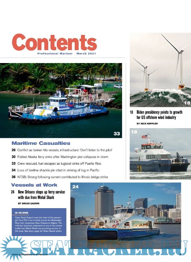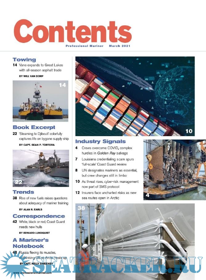Our publication is for professionals who work in the maritime industries both onboard vessels and onshore. The editorial emphasis is on training and licensing, maritime casualties, technology, engineering and regulatory trends and issues. Professional Mariner publishes 9 regular issues, e-mail newsletters, a website and a digital replica of the print magazine which reaches readers around the world. In addition, two special issues, American Tugboat Review and American Ship Review, are published annually.