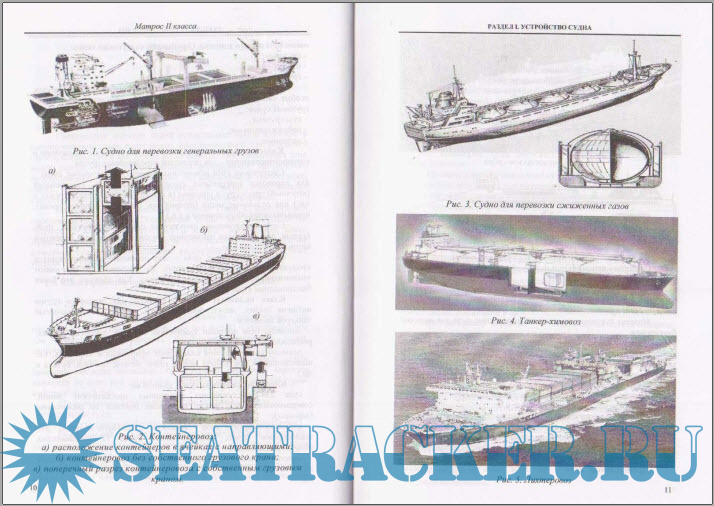 Раздел 1. УСТРОЙСТВО СУДНА 1.1. Введение 8 1.2. Классификация судов и главные размерения судна 8 1.2.1. Классификация судов 8 1.2.2. Основные плоскости корпуса судна. Главные 13 размерения 1.2.3. Грузовая марка и марки углублений 16 1.3. Эксплуатационные и мореходные качества судов 17 1.3.1. Эксплуатационные качества судна 17 1.3.2. Мореходные качества судна 18 1.4. Конструкция корпуса судна и судовая архитектура 22 1.4.1. Прочность корпуса и его конструкция 22 1.4.2. Системы набора и элементы набора корпуса 23 1.4.3. Архитектурные элементы судов 27 1.4.4. Судовые помещения 29 1.5. Судовые устройства 32 1.5.1. Рулевое устройство 33 1.5.2. Якорное устройство 34 1.5.3. Швартовное устройство 37 1.5.4. Грузовое устройство 38 1.5.5. Буксирные устройства 41 1.6. Судовые системы 42 1.6.1. Классификация судовых систем 42 Раздел 2. СУДОВОЖДЕНИЕ 2.1. Введение. Наука “Судовождение” и ее основные части 43 2.2. Основные понятия в навигации и лоции 43 2.2.1. Предмет навигации 43 2.2.2. Формы и размеры Земли 44 2.2.3. Основные точки, линии и плоскости земного 45 шара 2.2.4. Морские единицы измерения 46 2.2.5. Географические координаты. Разность широты и 47 разность долготы 2.2.6. Дальность видимости предметов и огней 48 2.2.7. Система счета направлений в море 48 2.4.3. Атмосферное давление 69 2.4.4. Ветер 70 2.4.5. Облака 71 2.4.6. Атмосферные осадки 72 2.4.7. Предсказание погоды 73 2.4.8. Мировой океан 74 2.4.9. Состав и температура морской воды 75 2.4.10. Волнения и течения 76 2.4.11. Приливы 78 2.4.12. Льды 80 2.5. Несение ходовой навигационной вахты на 82 вспомогательном уровне 2.5.1. Требования Международной конвенции о 82 подготовке и дипломировании моряков и несении вахты - ПДМНВ-78/95 (Раздел A-II/4) 2.5.2. Умение понимать команды и общаться с 86 командным составом судна 2.5.3. Общие обязанности матроса II класса 88 2.5.4. Несение вахты в порту 89 2.5.5. Судовые средства связи и сигнализации I Раздел 3. ТЕХНИКА ЛИЧНОГО ВЫЖИВАНИИ ПРОТИВОПОЖАРНАЯ ЗАЩИТА И МН'ЫЛ < ПОЖАРАМИ, ЭЛКМЕНТАРН \И И* РИМ* МЕДИЦИН! КАЯ ПОМОЩЬ. НИИ \М БЕЗОПАСНОСТЬ И ОМЦМ1 Ш.МШИНм III 3.1. Аварийные ситуации пи морс 3.4. Обучение и подготовка экипажа к борьбе за 116 живучесть судна 3.5. Судовые сигналы тревог. Расписание по тревогам 117 3.6. Выживание на море 118 3.7. Спасание с помощью авиации и вертолетов 119 3.8. Ворьба с пожаром 121 3.8.1. Виды пожаров 122 3.8.2. Организация противопожарной защиты на судне 125 3.8.3. Переносные средства пожаротушения и 129 противопожарное оборудование 3.8.4. Стационарные способы ту шения пожаров 131 3.8.5. Организация борьбы с пожарами на судне 135 3.9. Оказание первой медицинской помощи 141 Раздел 4. МОРСКАЯ ПРАКТИКА 4.1. Общие сведения о рангоуте и такелаже 151 4.2.11редметы палубного снаряжения 155 4.3. Тросы 164 4.4. Изготовление огонов, кнопов и мусингов 170 4.5. Техническая эксплуатация корпуса судна и его 173 помещений 4.6. Эксплуатация якорного оборудования 186 4.7.Эксплуатация швартовного оборудования 189 4.8. Эксплуатация буксирного оборудования 195 4.9. Эксплуатация грузового оборудования 197 Раздел 5. ОСНОВНЫЕ МЕЖДУНАРОДНЫЕ КОНВЕНЦИИ ПО БЕЗОПАСНОСТИ МОРЕПЛАВАНИЯ Введение 5.1. Международная конвенция об охране человеческой 201 жизни на море (SOLAS-74) 5.1.1. Общие сведения 201 5.12. Требования к спасательным средствам 202 5.1.3. Основные понятия по перевозке грузов 203 5.2. Международный морской кодекс по опасным грузам 204 (IMDG- Code) 5.3. Международные правила предупреждения столкпове- 209 ний судов на море (МПГ1СС-72) 5.3.1. Общие положения 209 Матрос II класса 5.3.2. Правила плавания и маневрирова