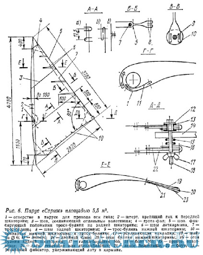 На самом деле всё обстоит с точностью «до наоборот». Одной из причин появления «Стрижей» было желание избавиться именно от этой «ж…», так характерной для парусов старых типов, в том числе и «бермудских гротов».