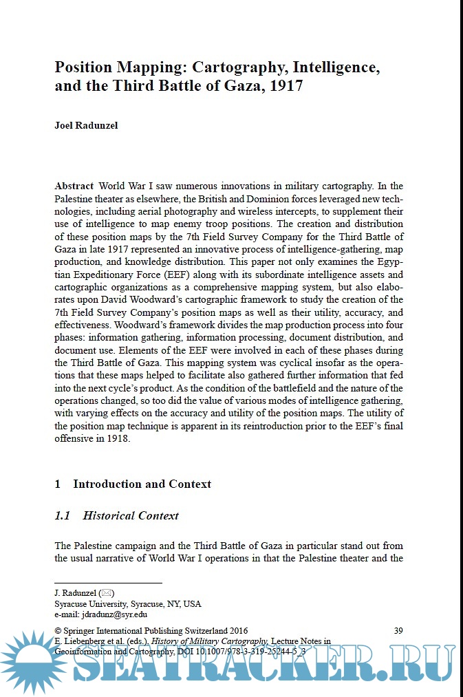 3. History of Military Cartography - 5th International Symposium of the ICA Commission on the History of Cartography, 2014.