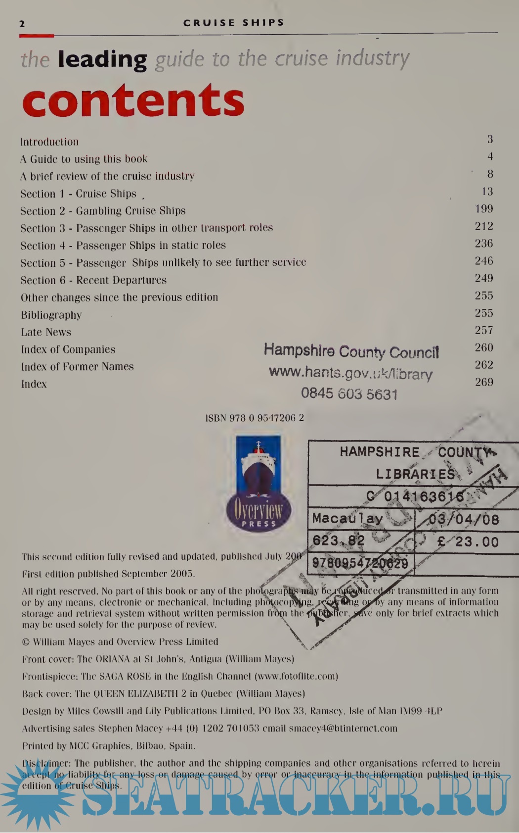 about 250 operators, giving brief historical information, technical details and former names. New for this edition is the inclusion of IMO numbers.