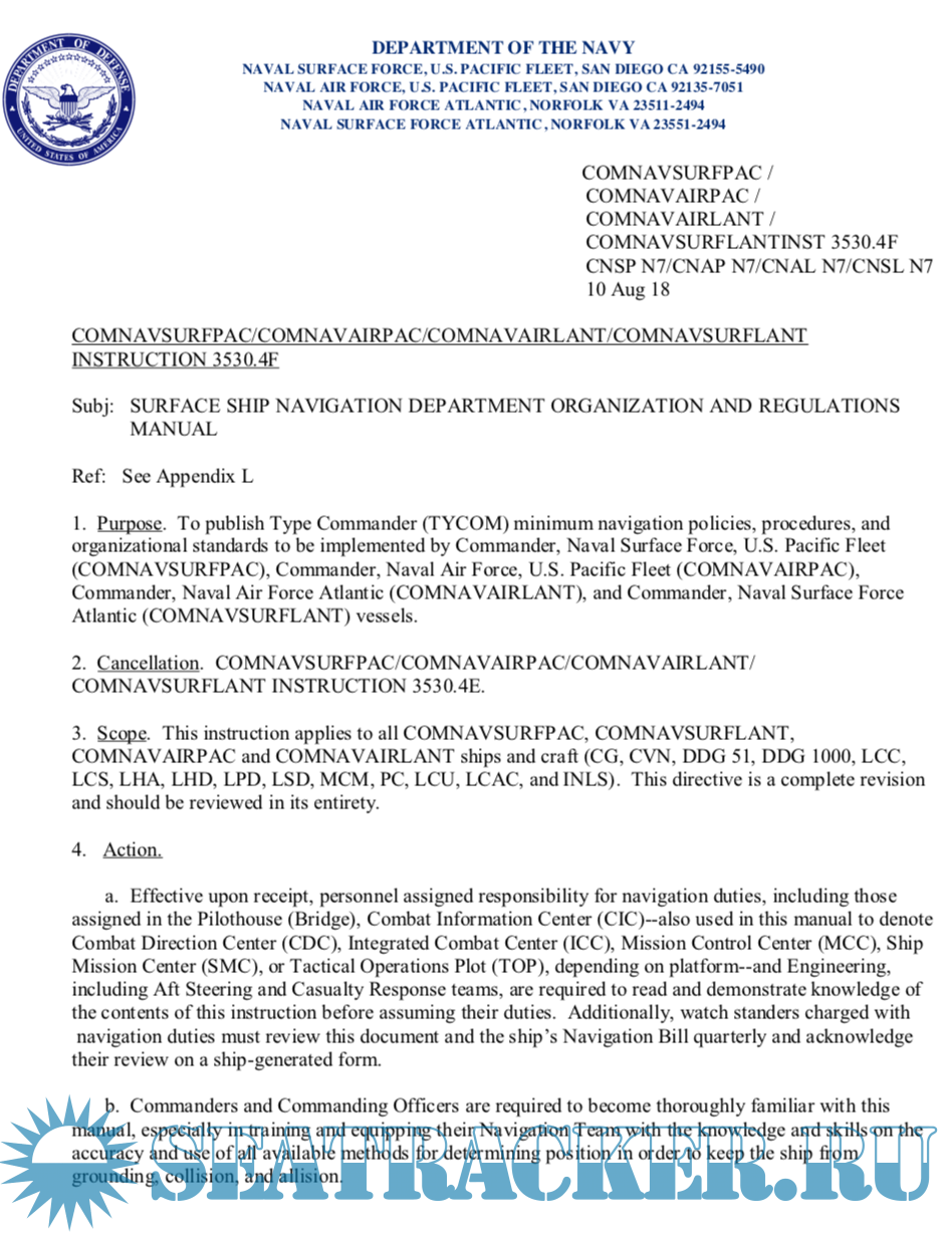 Description: Technological advances have changed the ways to display charts and plot ship’s position; however, the fundamentals of safe navigation have remained unchanged. As such, no specific technological advances or set of rules can be created that can keep the ship safe in all possible conditions. Ship safety is assured only through good judgment applied to the specifics of each situation. The navigator (e.g., the ship’s navigator and the officer of the deck (OOD)) remains constantly alert, continuously questions position information and the reliability of the chart, and anticipates danger before it arises. The navigator not only knows the current situation and its uncertainties, but thinks ahead. A navigator should utilize all of their resources. The Navigation team’s relationship with one another is a prime factor in overall mission success. The Bridge working with the CIC team is essential to enabling the ship to achieving any assigned warfighting mission.