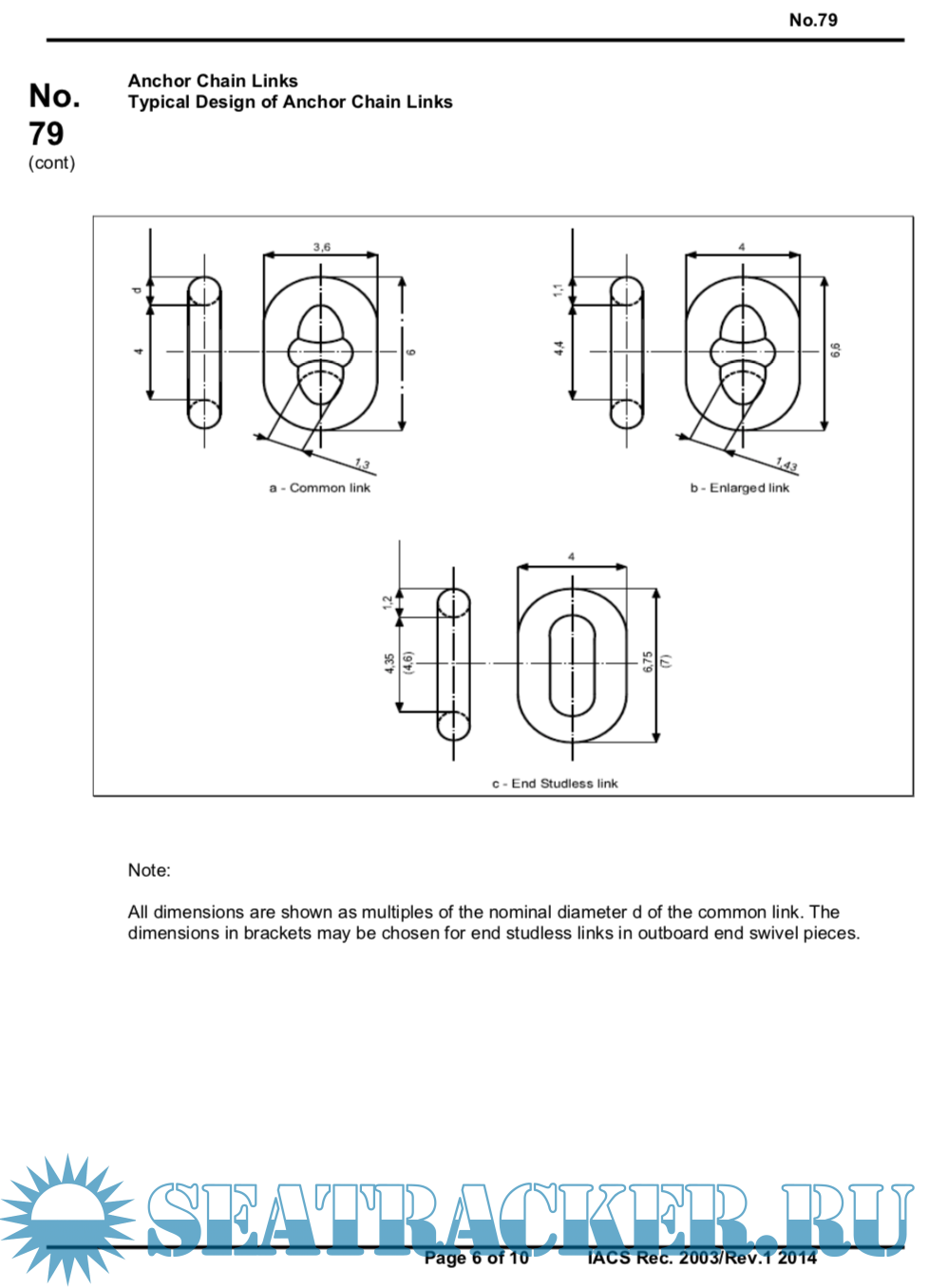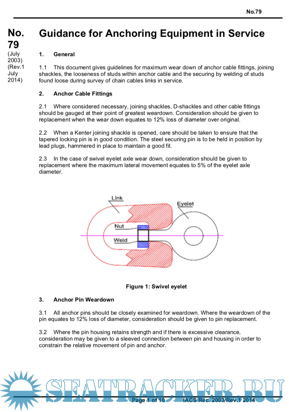 Description: This document gives guidelines for maximum wear down of anchor cable fittings, joining shackles, the looseness of studs within anchor cable and the securing by welding of studs found loose during survey of chain cables links in service.