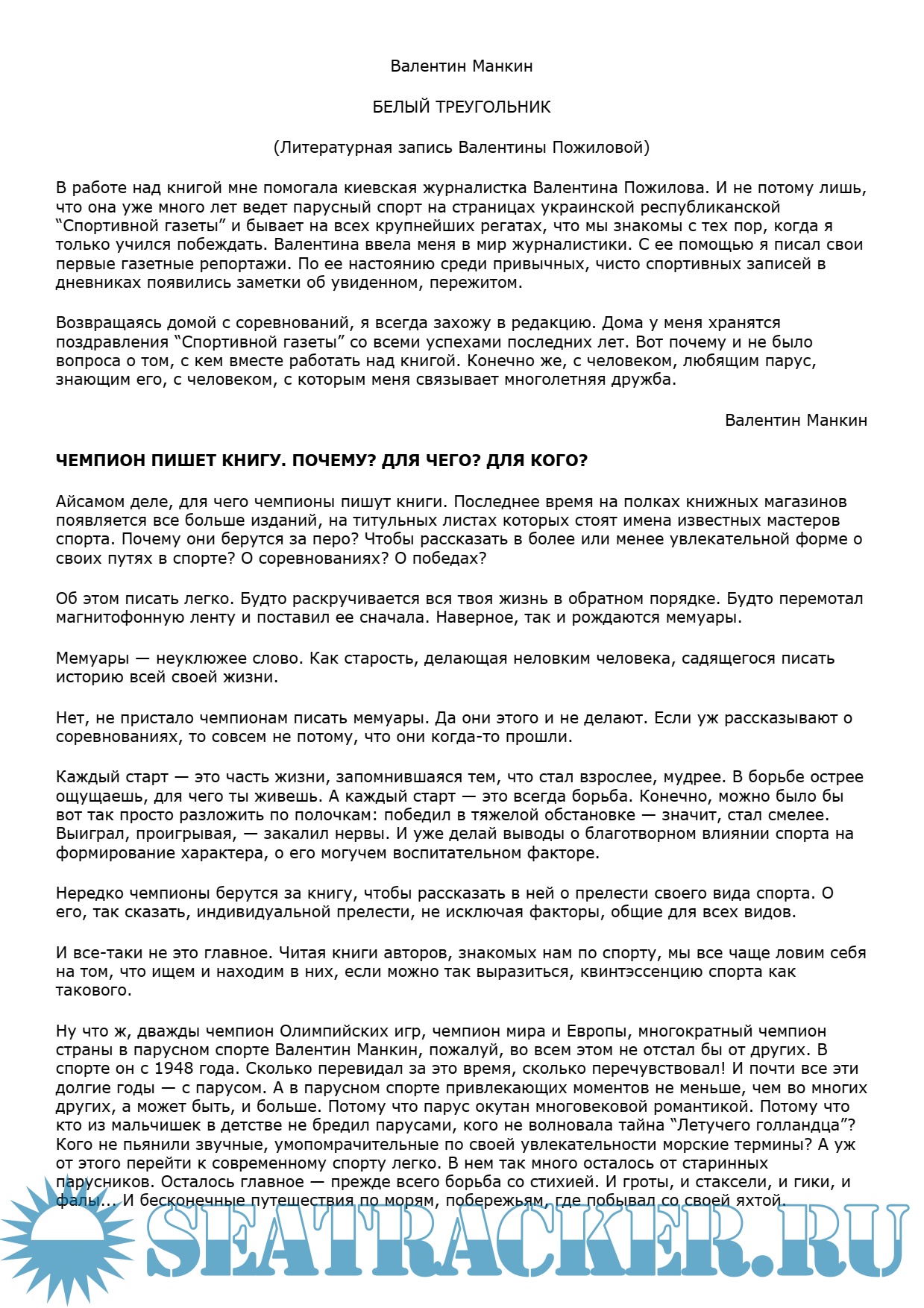 Валентина Пожилова. Чемпион пишет книгу. Почему? Для Чего? Для кого? (статья)