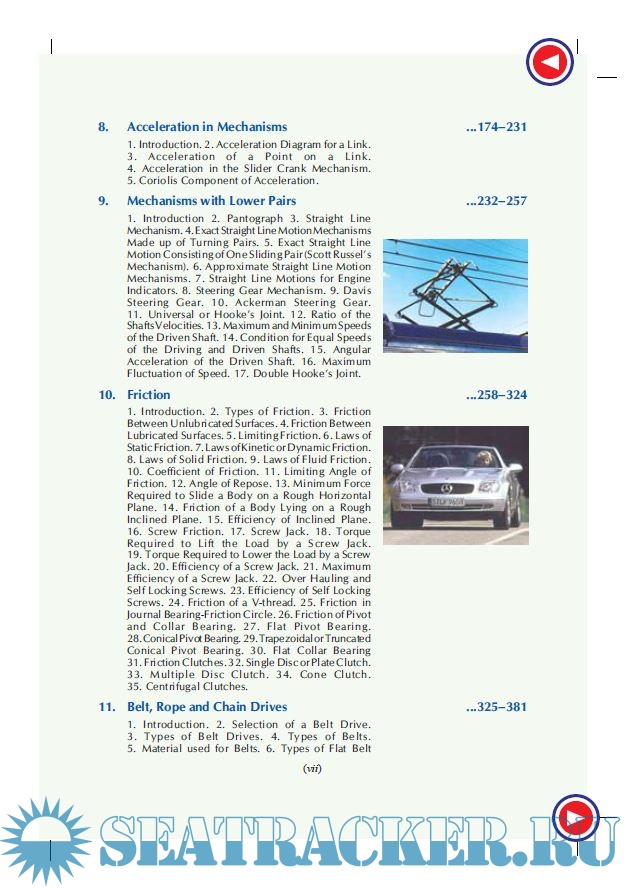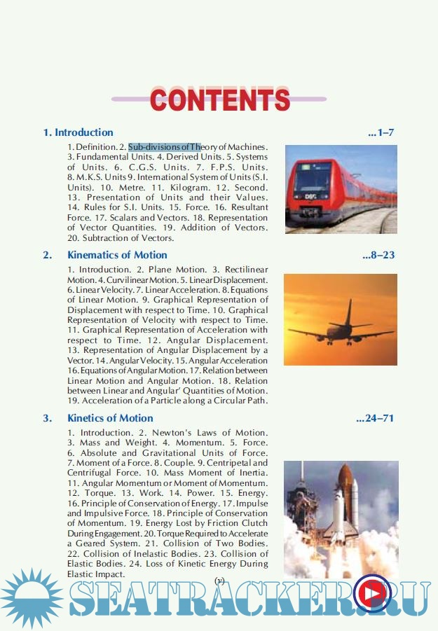 Description: The book begins with an introduction to the subject. This is followed by chapters on kinetics and kinematics of motion, velocity and acceleration in mechanisms, friction, gear trains, toothed gearing, dynamo-meters and brakes. Chapters on concepts like cams, rotating and reciprocating masses, transverse and longitudinal vibrations, torsional vibrations, and automatic control are also included in the book. A separate chapter is dedicated to computer-aided analysis and synthesis of mechanisms.