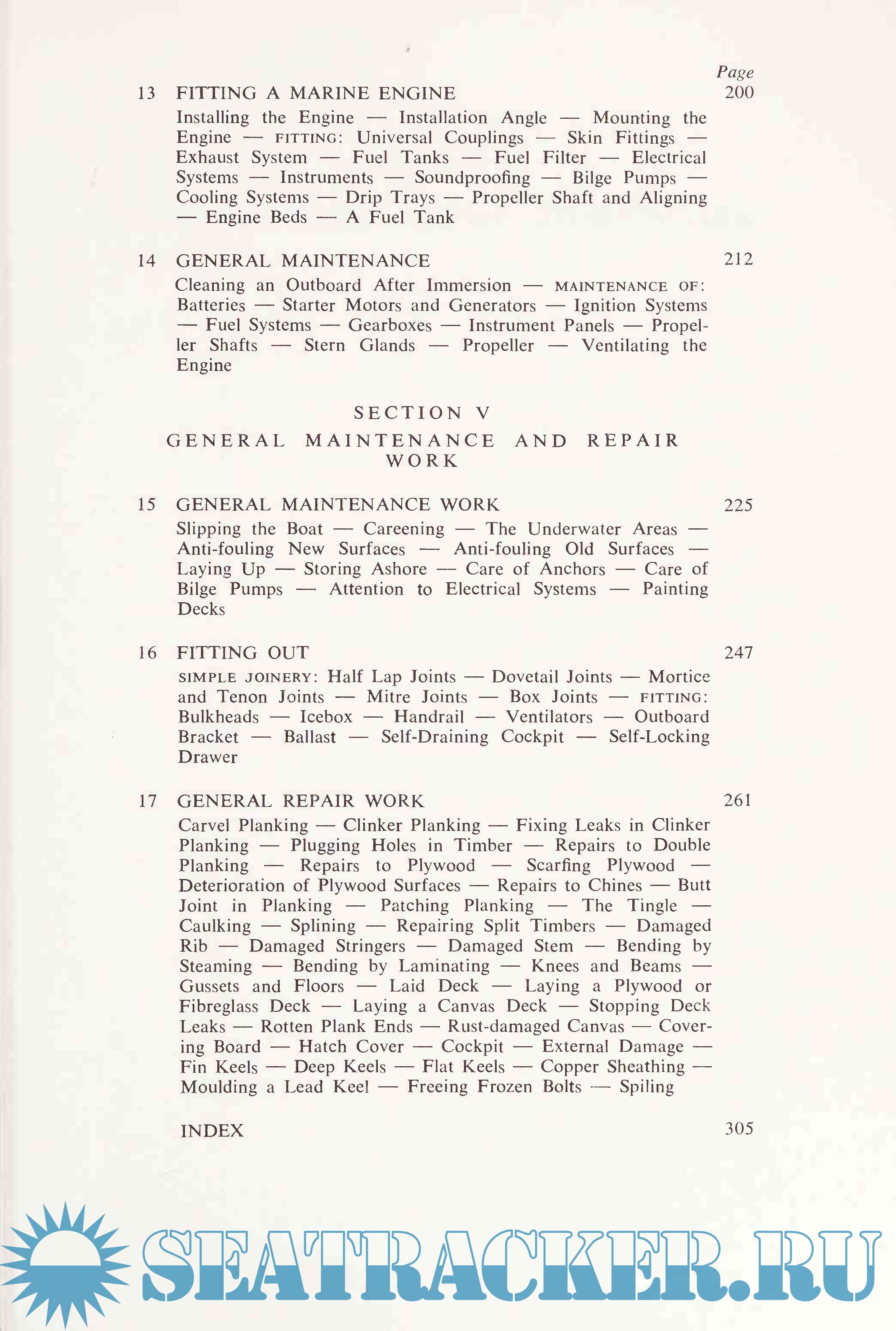 Every kind of marine engine is discussed from installation to trouble shooting. The section on diesel in-boards is particularly valuable and the author’s routine check list for keeping the power supply in perfect running order is a must for all boat owners.