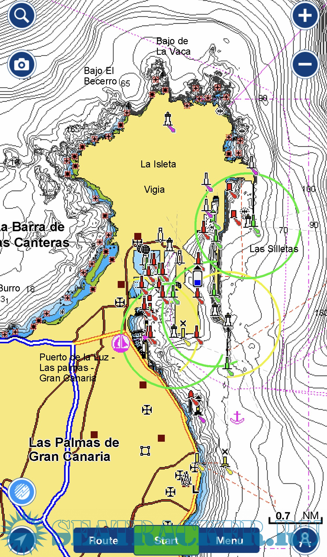 √ DOCK-TO-DOCK AUTOROUTING creates detailed routes even through narrow waterways and channels, based on chart data and navigation aids. POIs are automatically shown nearby your destination.