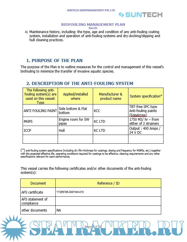 Description: The Plan is following the outline given in the IMO guideline, MEPC.207(62), dated 15 July 2011, entitled 2011 guidelines for the control and management of ship’s biofouling to minimize the transfer of invasive aquatic species.
