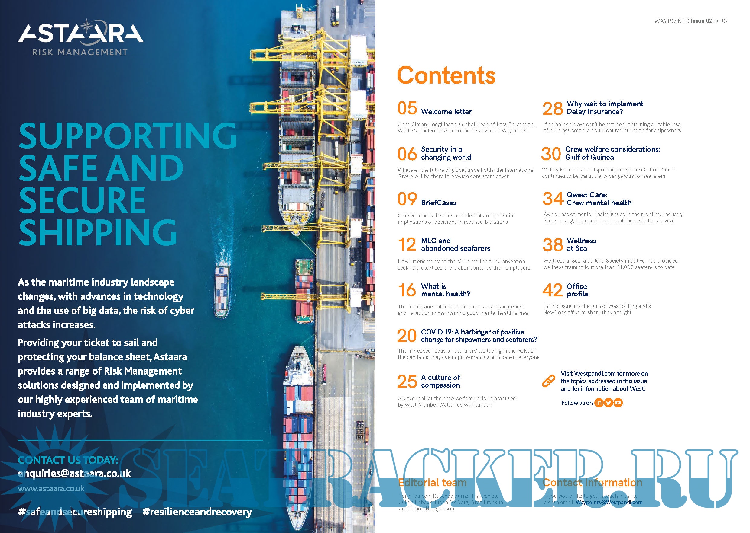 The second issue of Waypoints magazine takes the mental health of mariners as its focus. Our staff outline beneficial techniques for self-awareness and reflection, highlight compassionate crew welfare policies, look at amendments to the Maritime Labour Convention designed to protect seafarers abandoned by their employers, and emphasise the critical importance of the next steps. Also included are features on the International Group’s ongoing work to provide consistent cover for its stakeholders irrespective of global trading fluctuations, and the wisdom of implementing delay insurance. Our New York branch comes under the office profile spotlight, and we present another round-up of recent arbitrations.