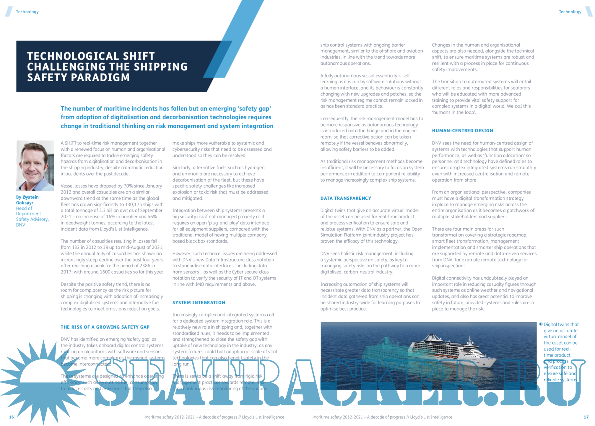 Year: 2021 Language: english Author: Chris Pålsson Genre: Guide Publisher: Lloyd’s List Intelligence Format: PDF Quality: eBook Pages count: 25 Description: This comprehensive report into maritime safety is based upon data drawn from the decade spanning 2012-2021, up to the mid-point of 2021. Using the unique databases of Lloyd’s List Intelligence, we have reviewed 866,000 inspections, 26,000 detentions, 22,000 casualty incidents, and 1,000 losses. Through interrogation of that data, we have identified a gratifying, overall pattern of improvement in maritime safety, although there can be no room or time for complacency, and critical issues lie ahead for shipping. However, it does no harm to look at what has been achieved as a result of targeted and consolidated effort, even as the industry seeks solutions for future issues to be confronted. Enhancements to safety and environmental protection in the past decade have been remarkable.