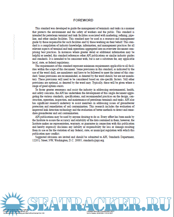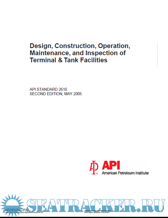 Year: 2005 Language: english Author: API STANDARD Genre: Guide Format: PDF Quality: eBook Pages count: 68 Description: API STANDARD 2610 - Design, Construction - Operation - Maintenance and Inspection of Terminal and Tank Facilities