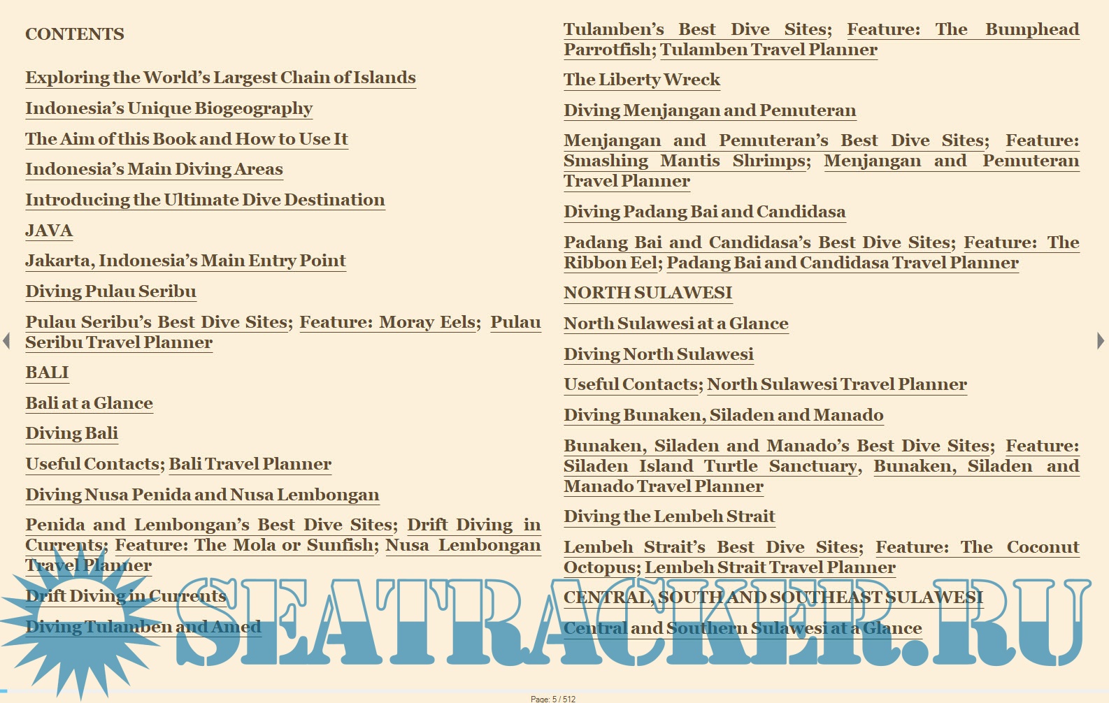 A chapter is devoted to each of the following important regions in Indonesia for divers: