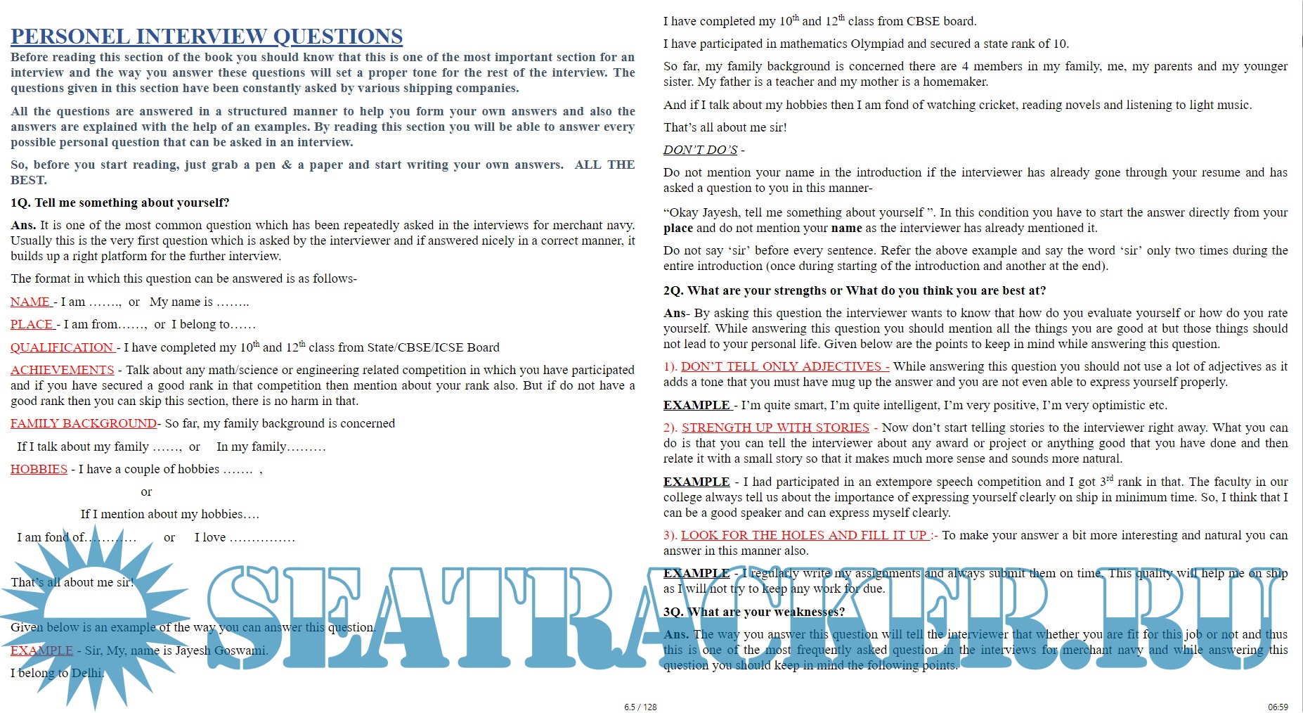 Interview Questions and Answers For Different Companies - Merchant Marine [2020, PDF]