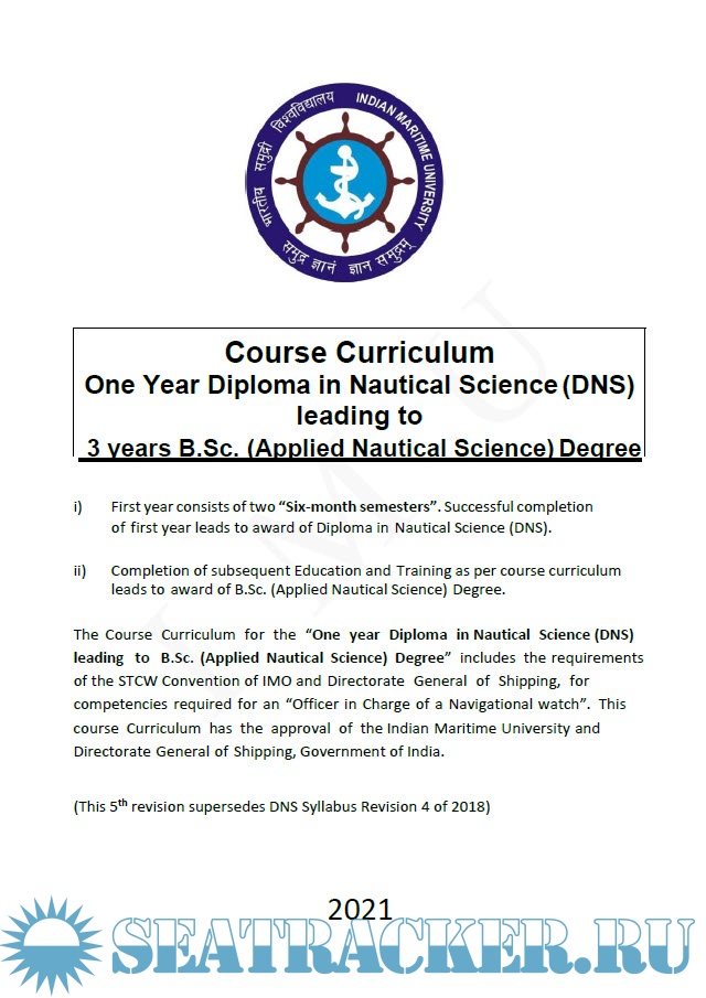 Description: The Course Curriculum for the “One year Diploma in Nautical Science (DNS) leading to B.Sc. (Applied Nautical Science) Degree” includes the requirements of the STCW Convention of IMO and Directorate General of Shipping, for competencies required for an “Officer in Charge of a Navigational watch”.