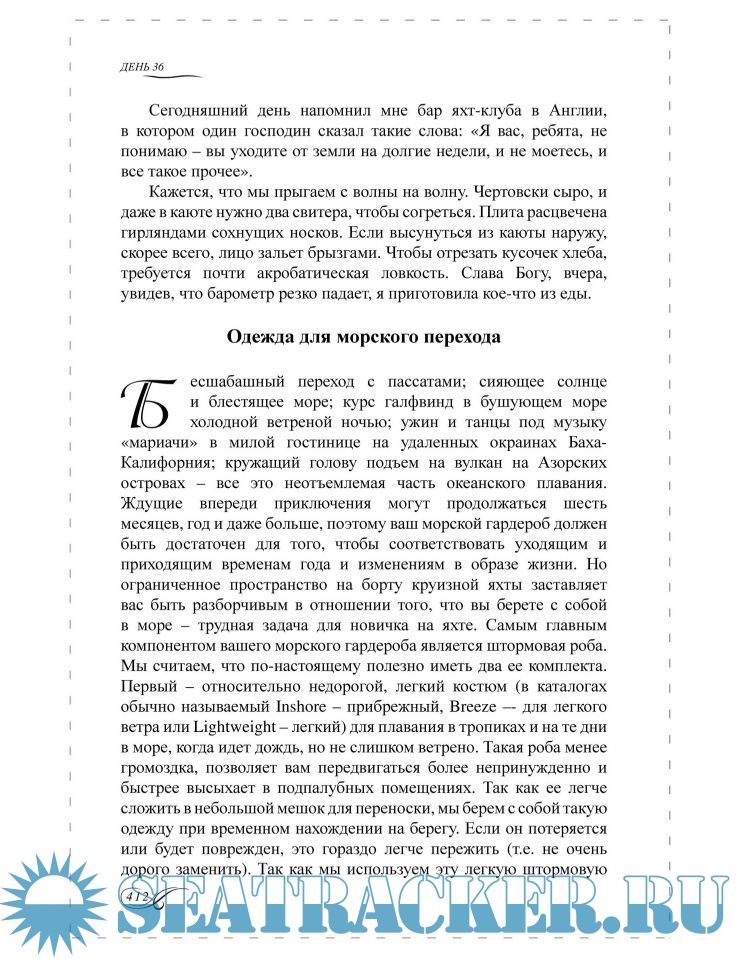 Описание: Эта книга – мировой яхтенный бестселлер всемирно известных авторов, которые провели почти всю свою жизнь на яхте, в океанском плавании под парусом. Текст написан легко, с юмором, содержит ценные практические советы по подготовке к плаванию, а также рекомендации по закупке провианта, подборе необходимой одежды для различной погоды, налаживанию и ведению быта на яхте. Книга предназначена как любителям парусных гонок, так и тем, кто предпочитает круизное плавание.