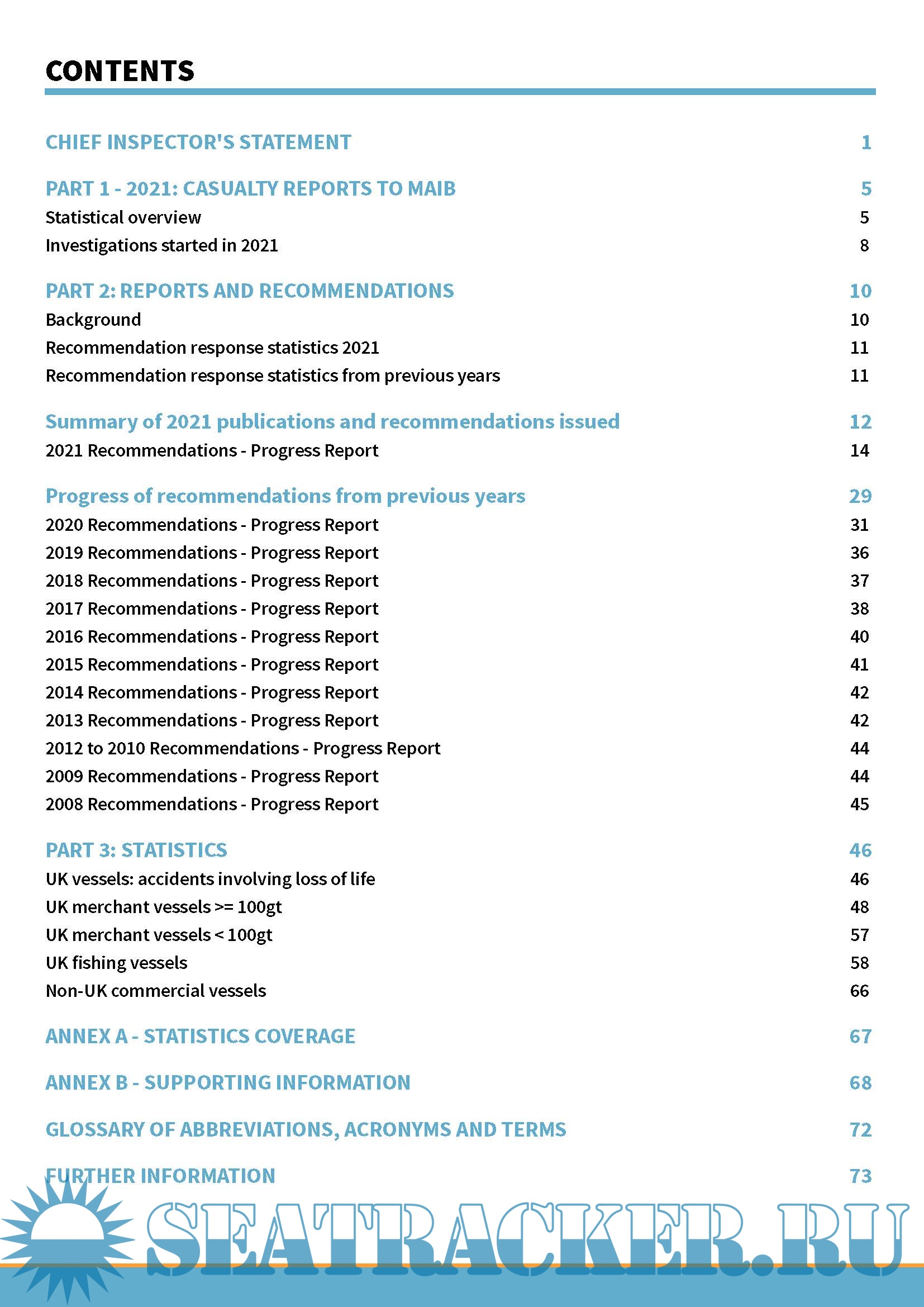 Marine Accident Recommendations and Statistics: Annual Report